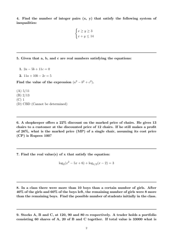 Stocks A, B and C, at 120, 90 and 80 rs respectively. A trader holds a portfolio consisting 60 shares of A, 20 of B and C together. If total value is 33000 what is the number of shares he holds.