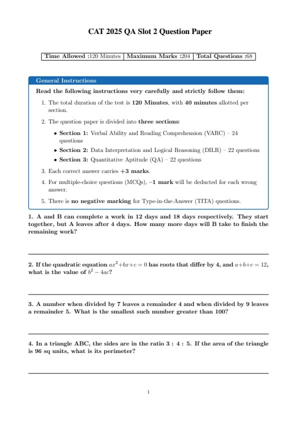 | CAT 2025 Slot 2 QA Question Paper with Solutions PDF | |