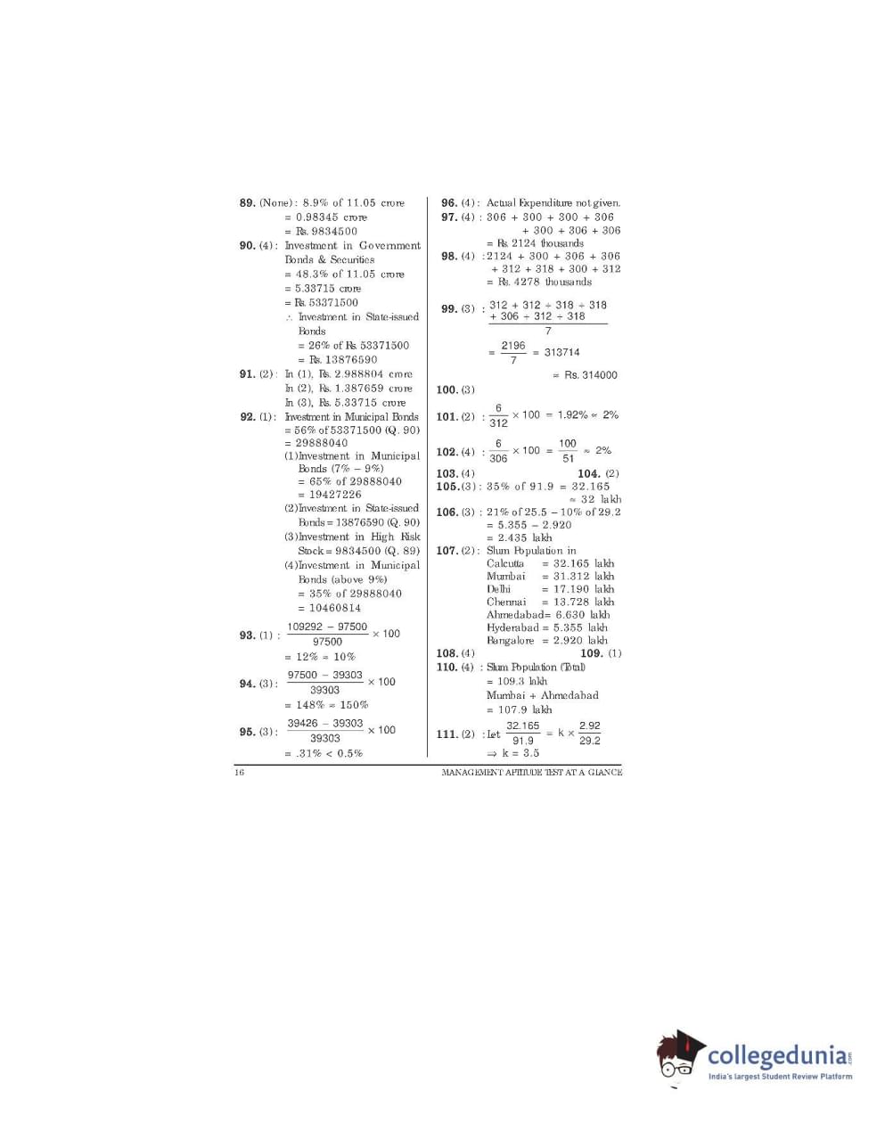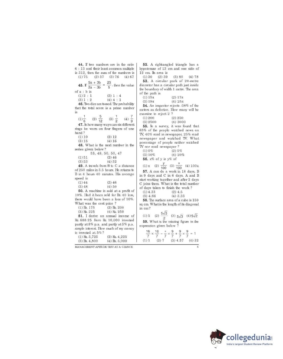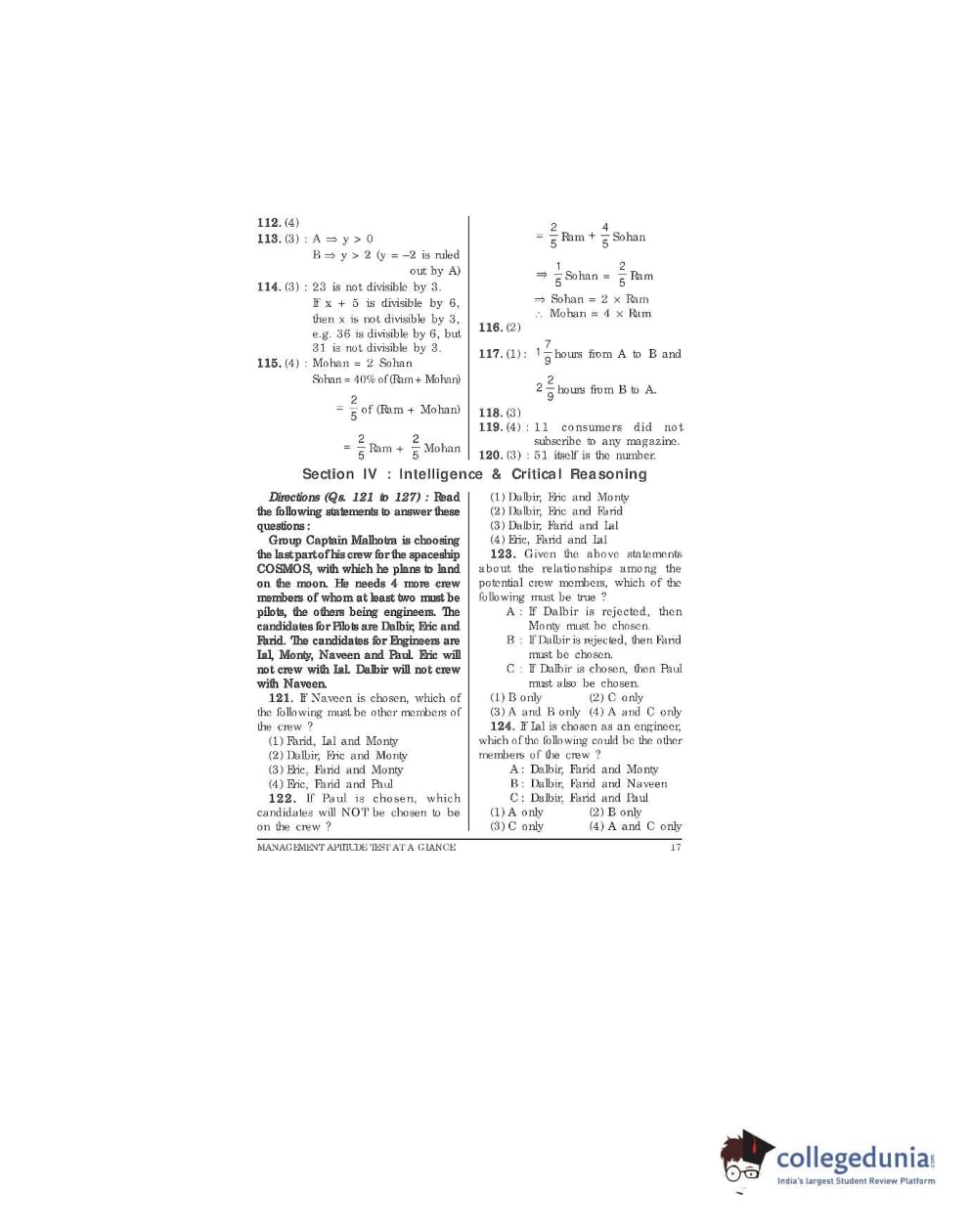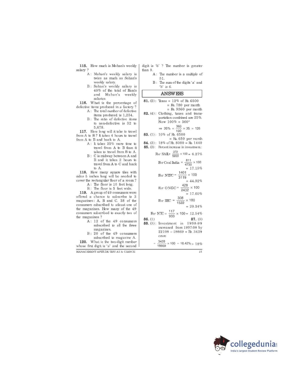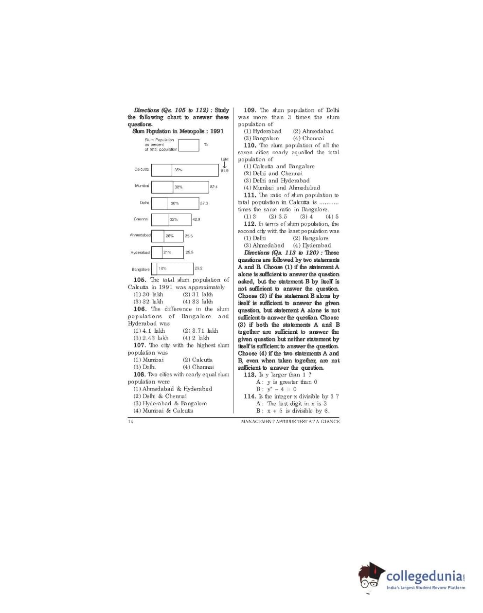 MAT 2000 Question Paper had 200 MCQs from five sections- Language Comprehension, Data Analysis and Sufficiency, Mathematical Skills, Intelligence and Critical Reasoning, Indian and Global Environment. Each section of MAT 2000 Question Paper had 40 questions. The overall difficulty level of MAT Question Paper 2000 was rated moderate. Candidates preparing for upcoming MAT exam can download and solve MAT 2000 Question Paper with Solutions PDF given below: