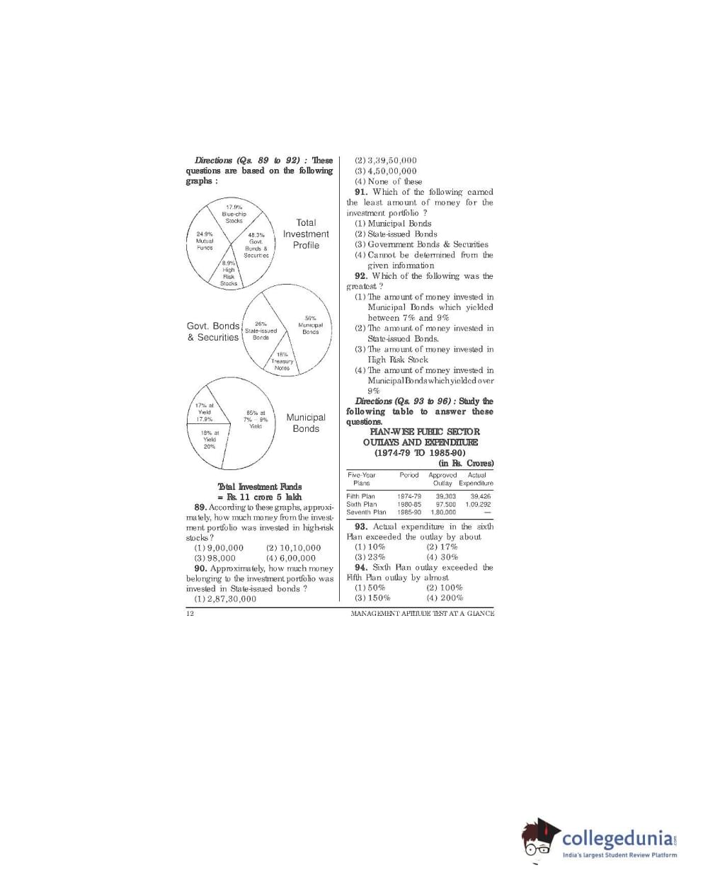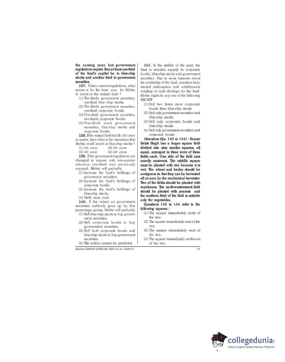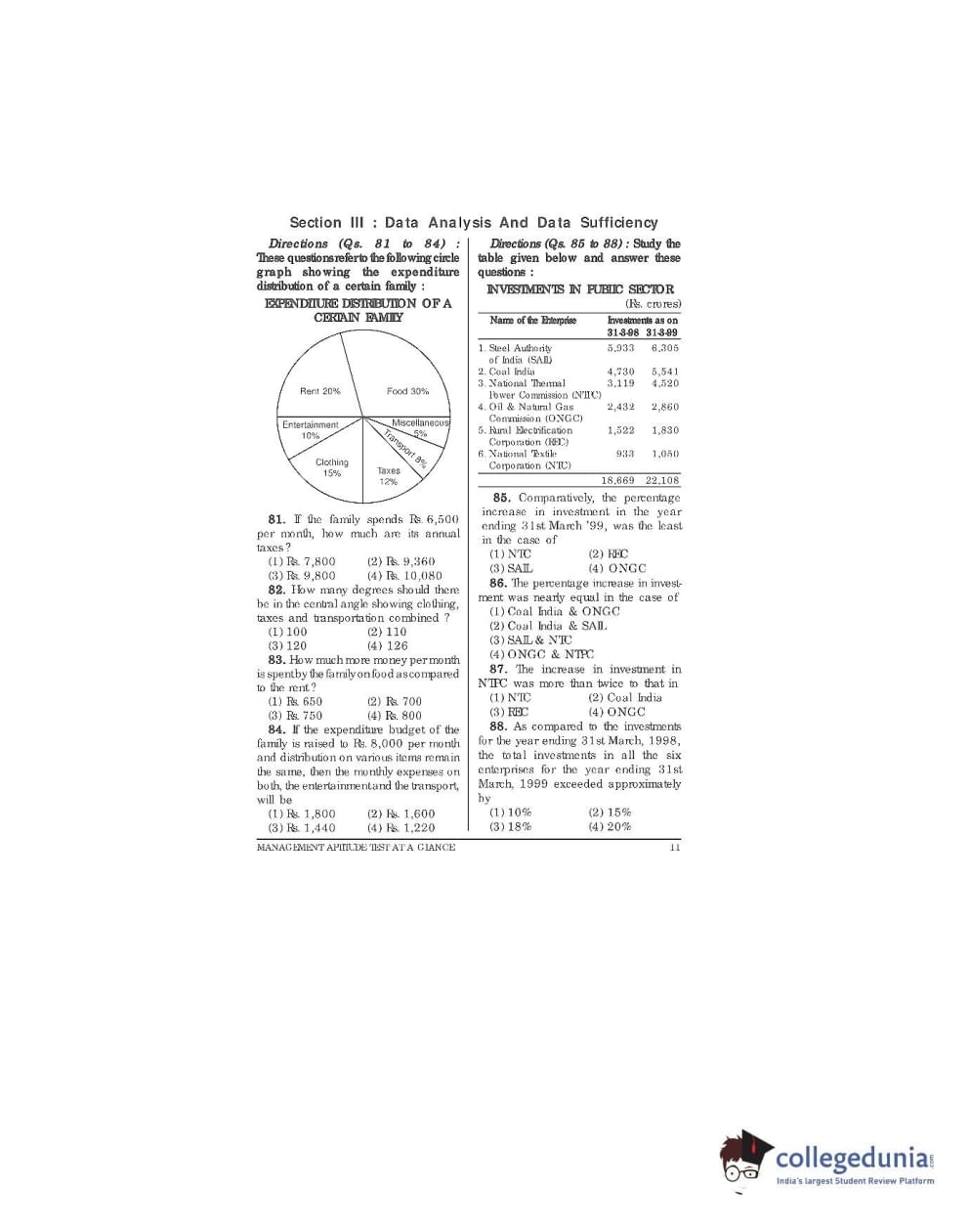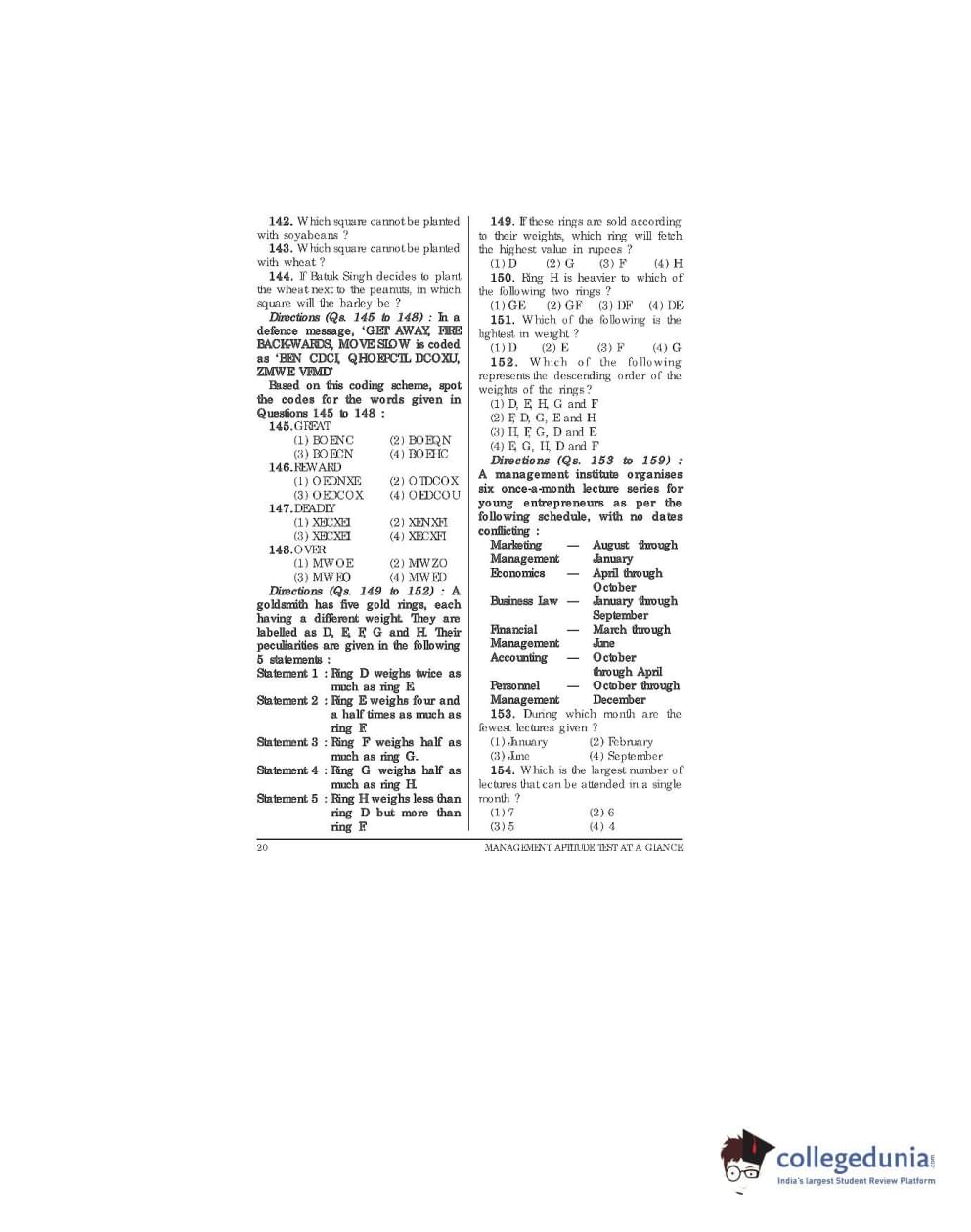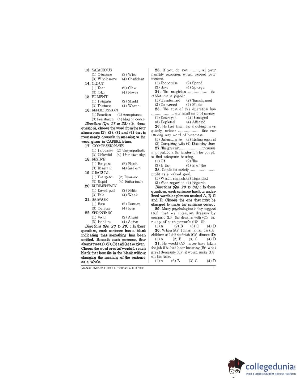 MAT 2000 Question Paper had 200 MCQs from five sections- Language Comprehension, Data Analysis and Sufficiency, Mathematical Skills, Intelligence and Critical Reasoning, Indian and Global Environment. Each section of MAT 2000 Question Paper had 40 questions. The overall difficulty level of MAT Question Paper 2000 was rated moderate. Candidates preparing for upcoming MAT exam can download and solve MAT 2000 Question Paper with Solutions PDF given below: