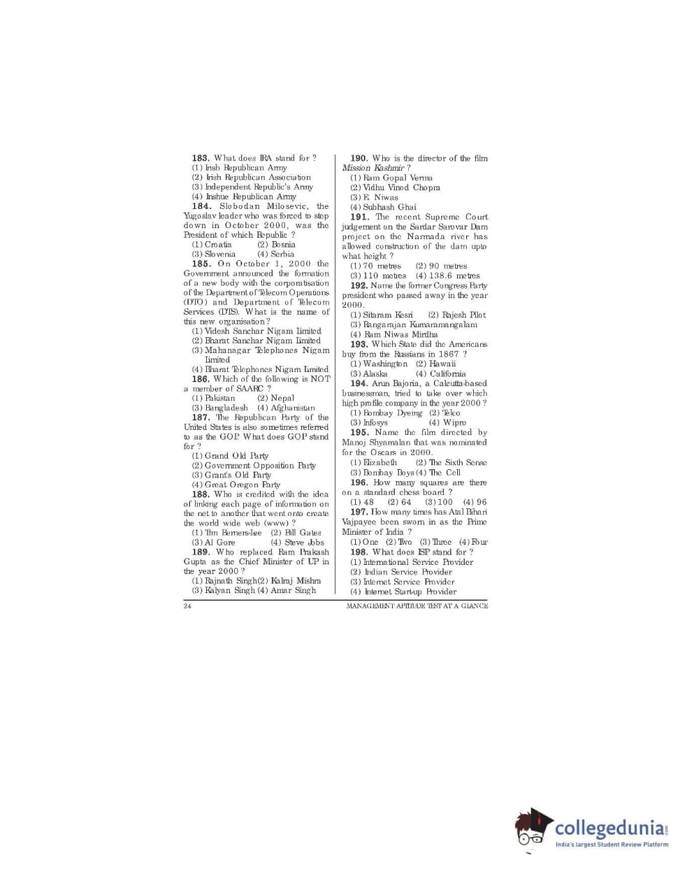 | MAT 2000 Question Paper PDF | MAT 2000 Answer Key PDF |