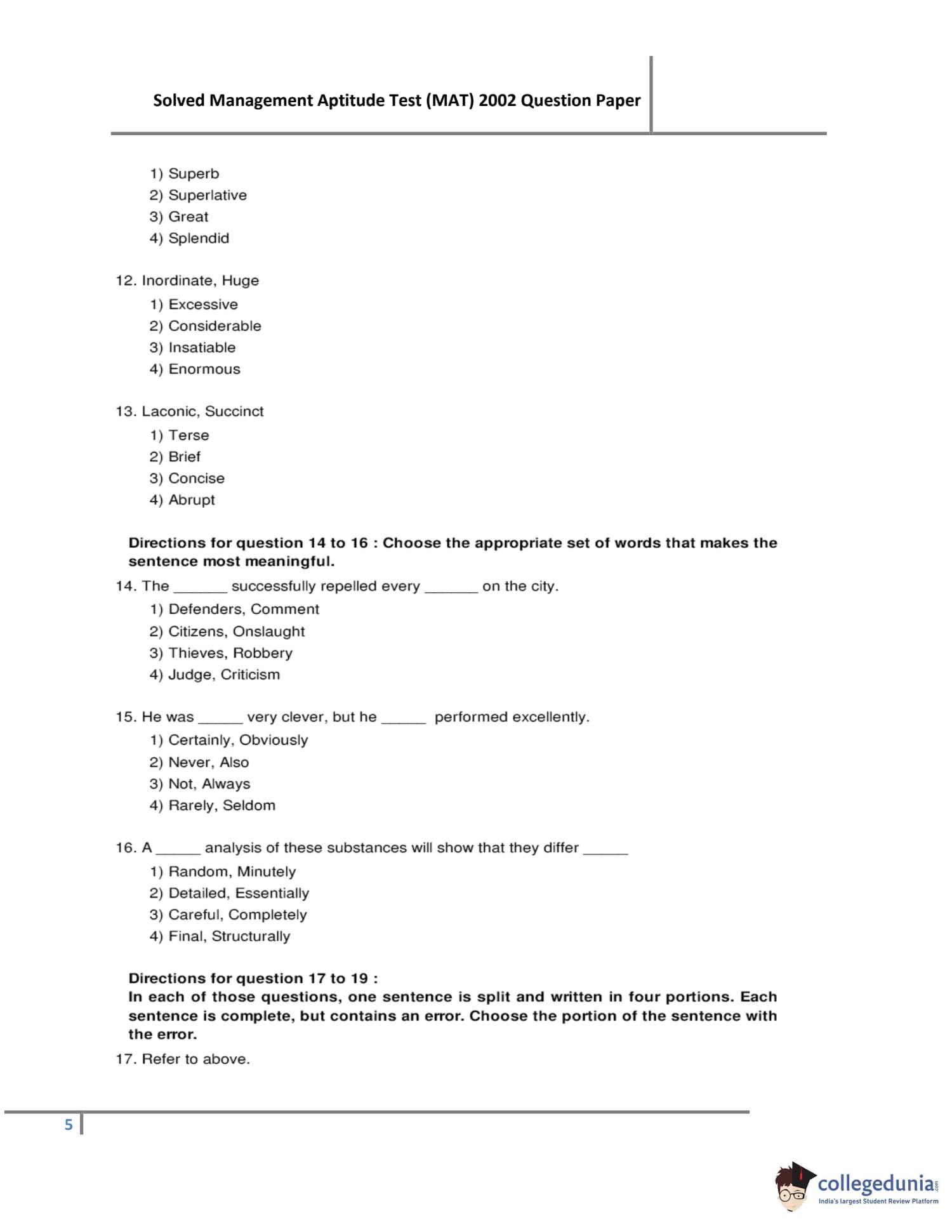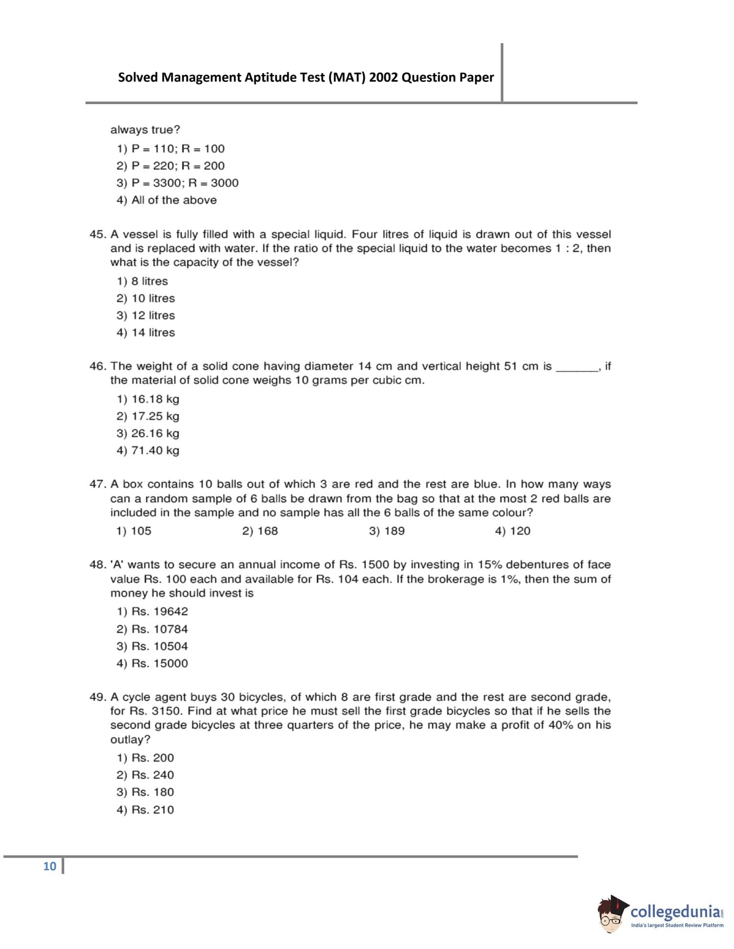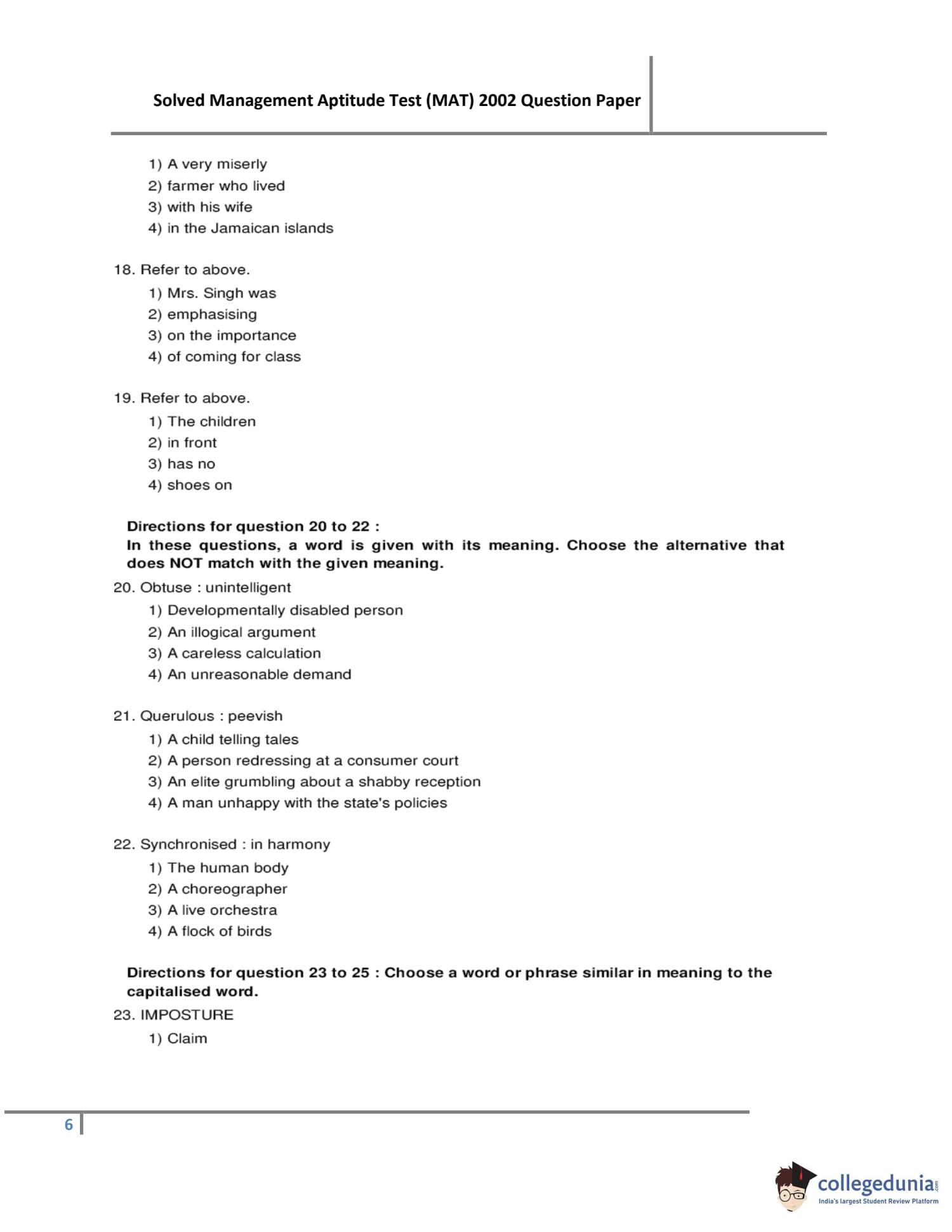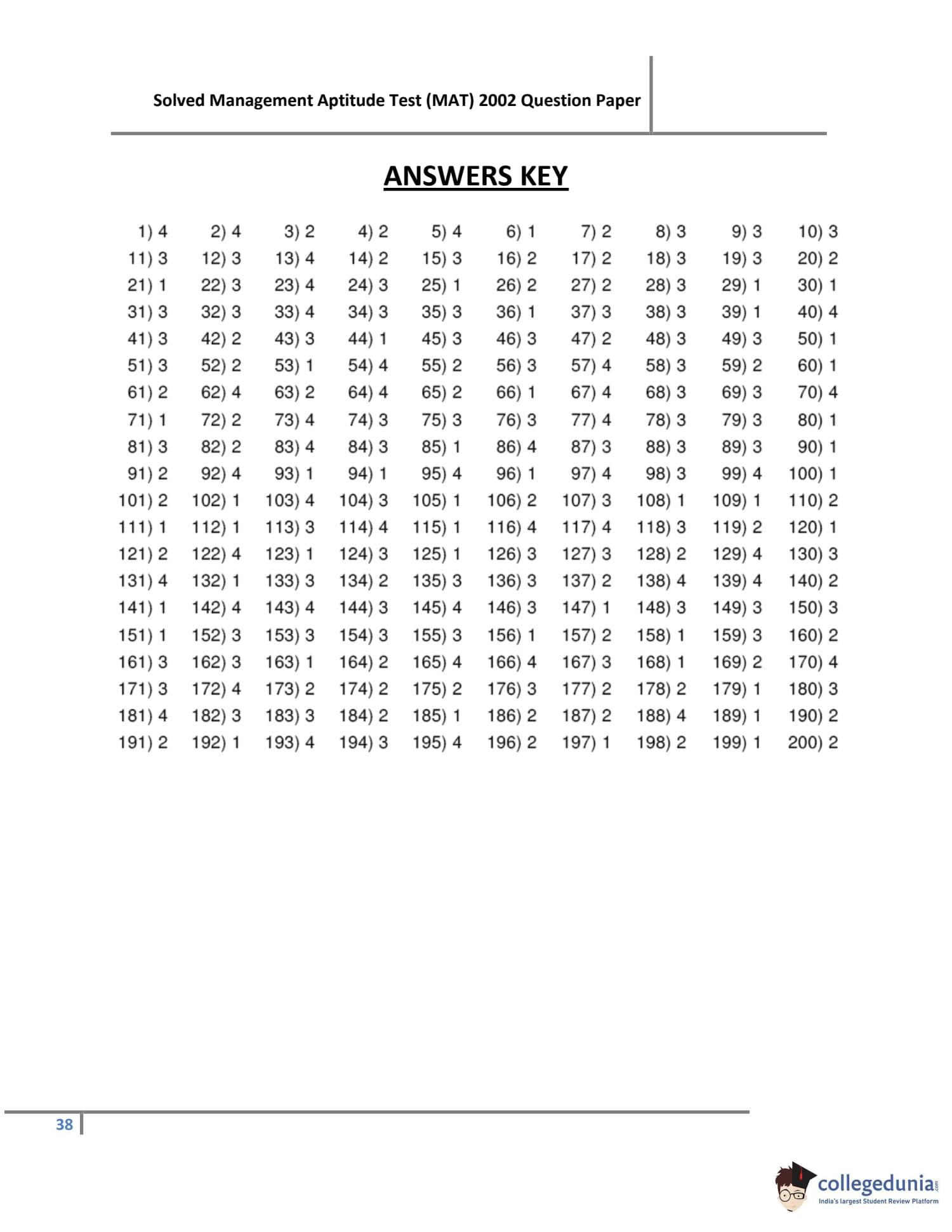| MAT 2002 Question Paper PDF | MAT 2002 Answer Key PDF |