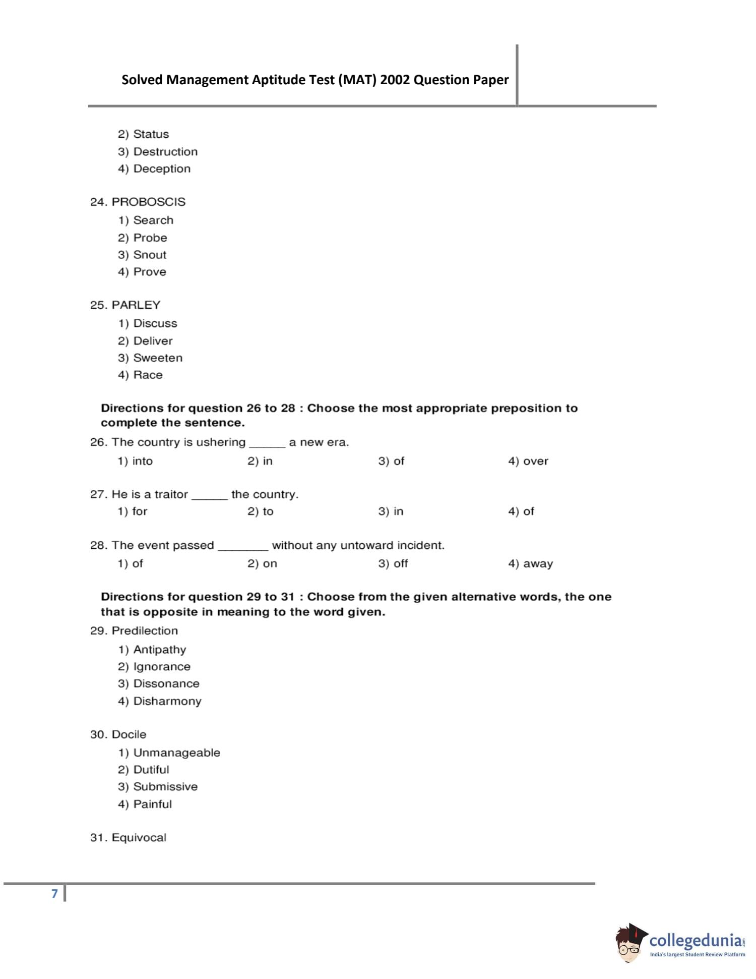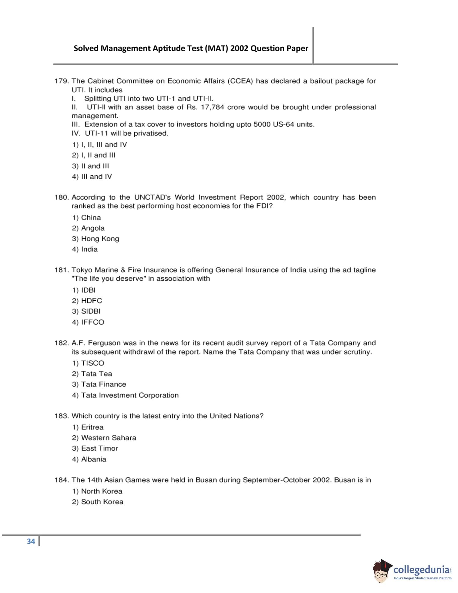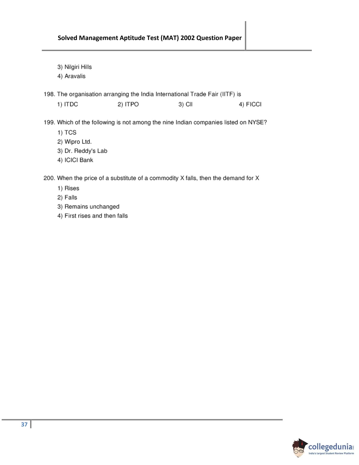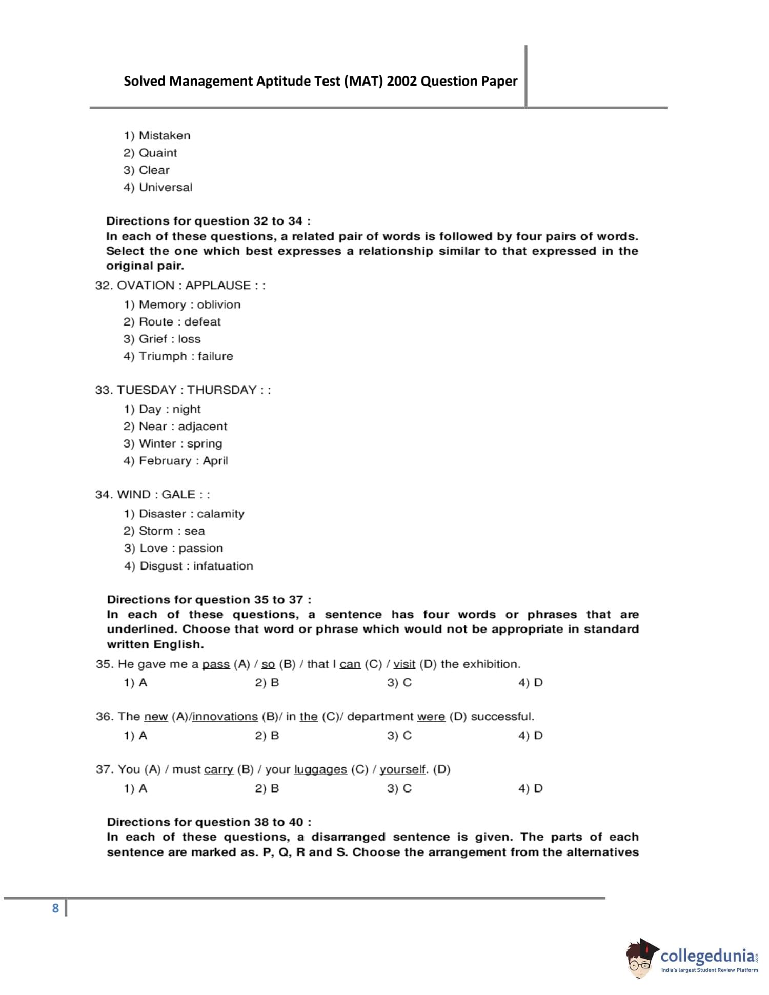 | MAT 2002 Question Paper PDF | MAT 2002 Answer Key PDF |
