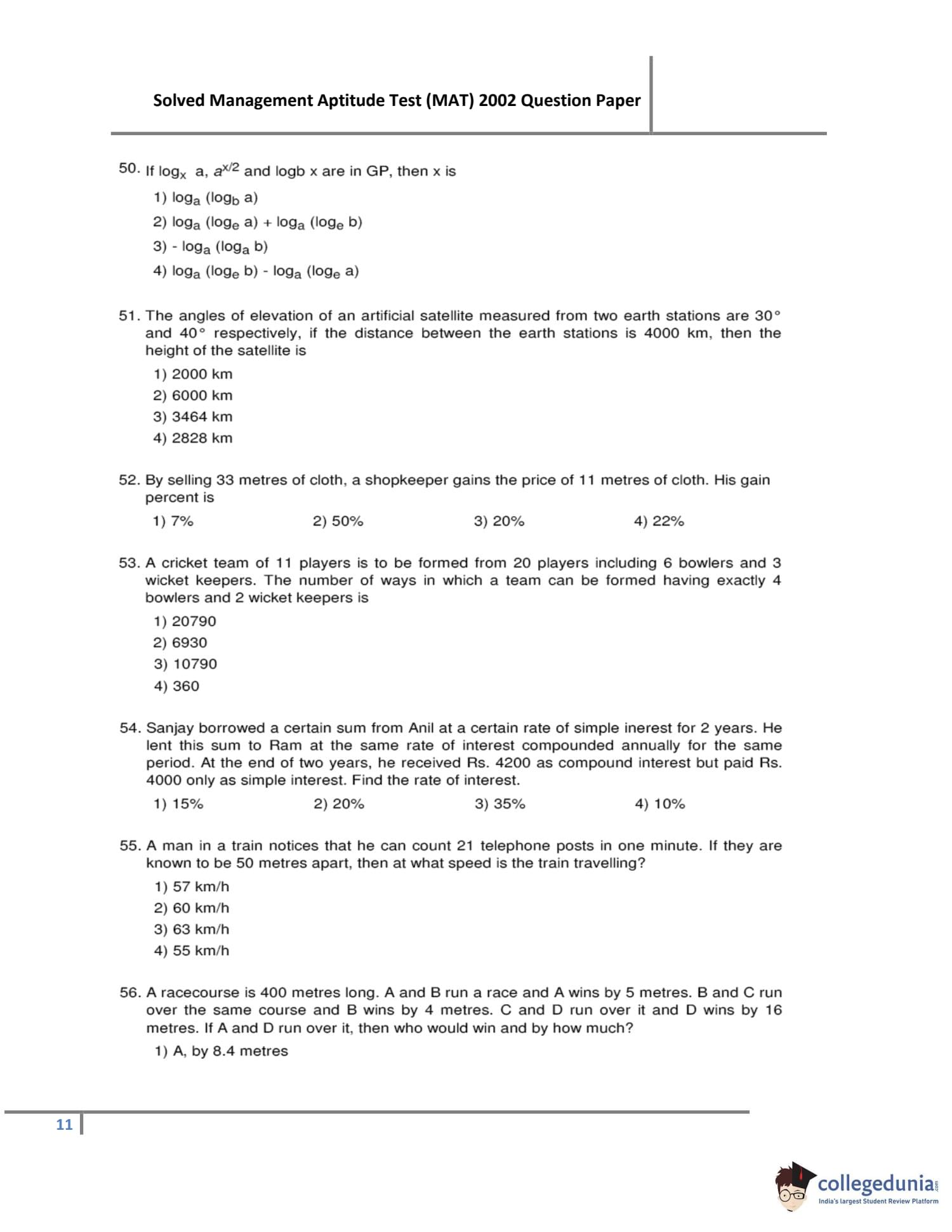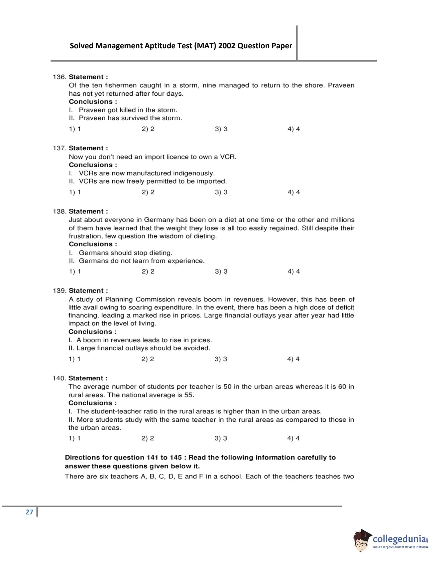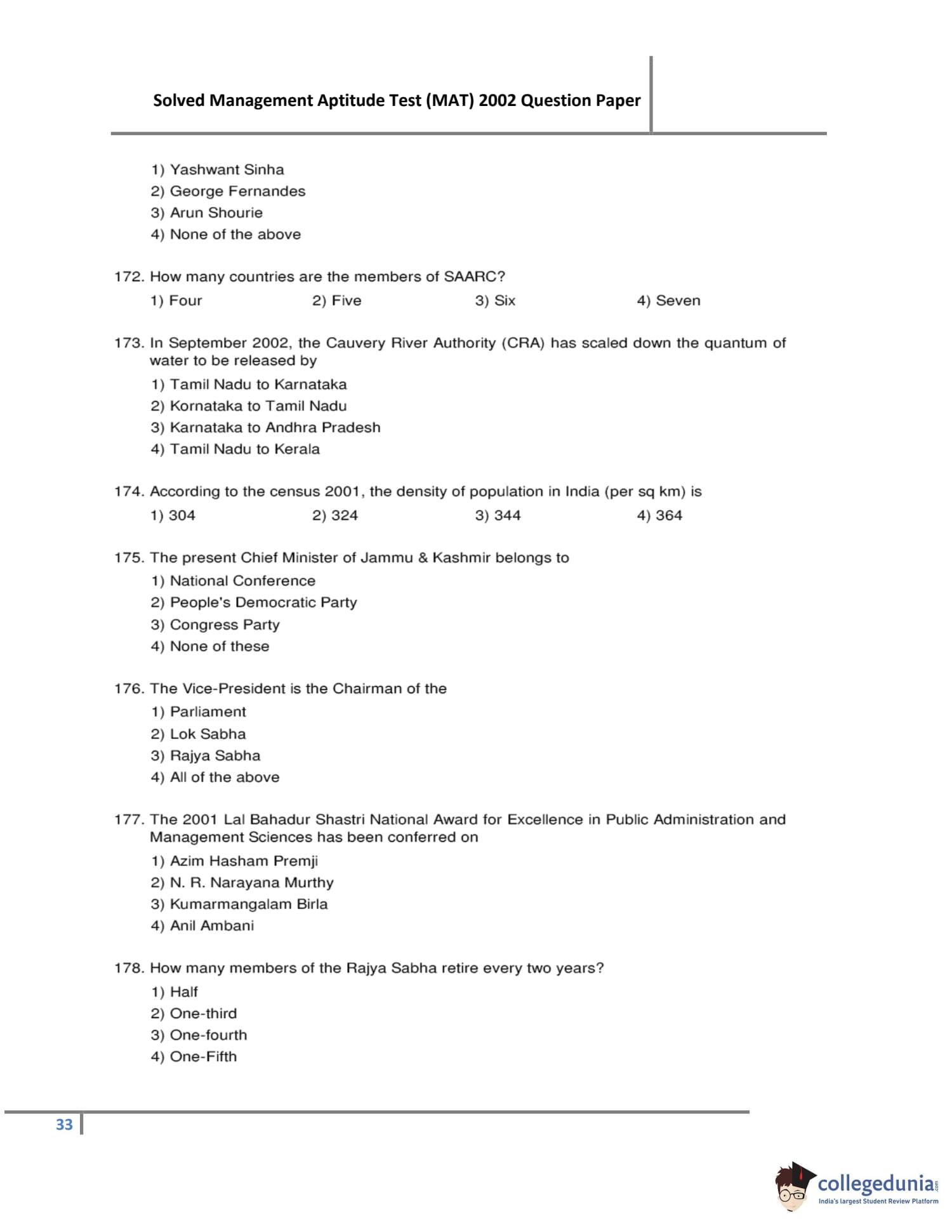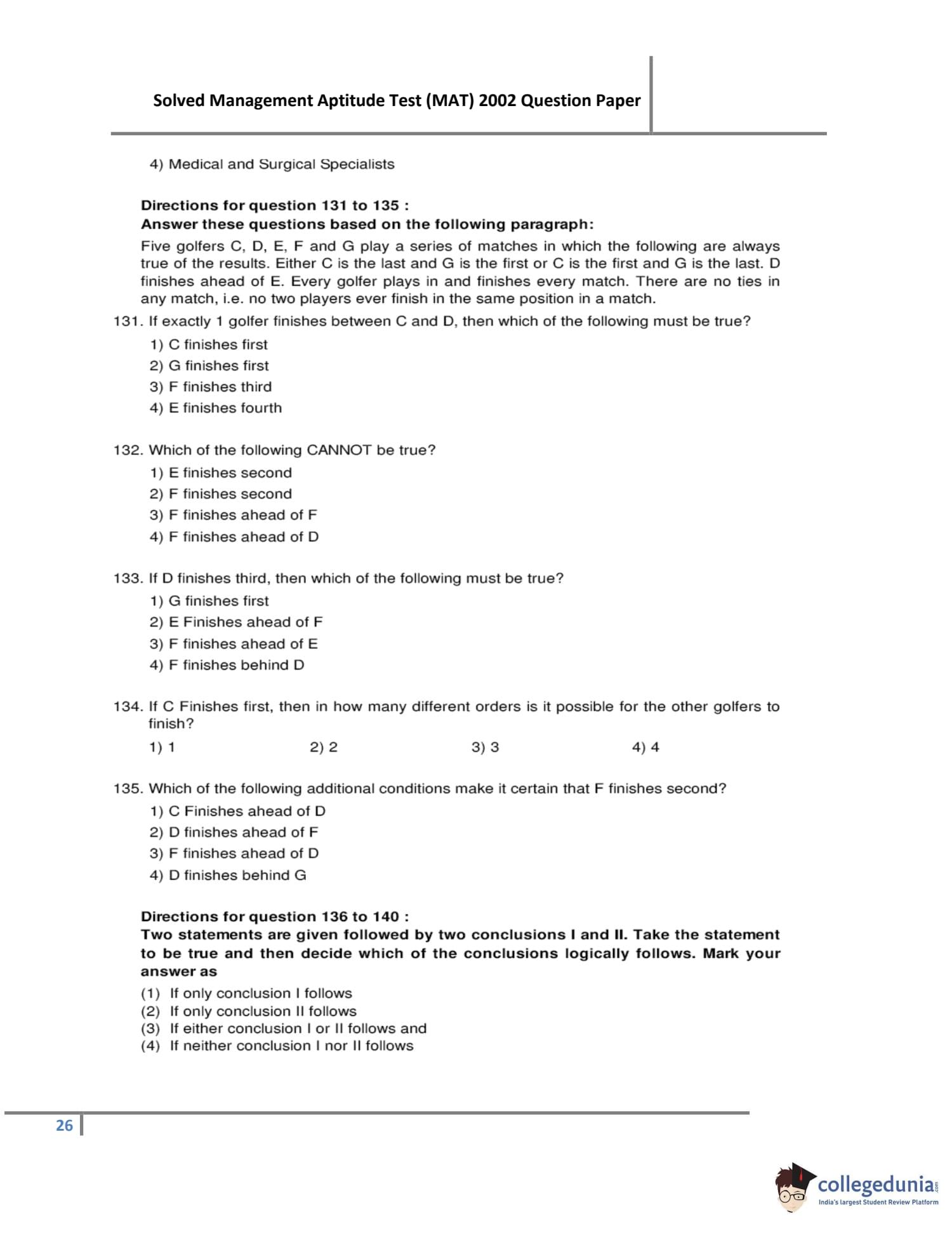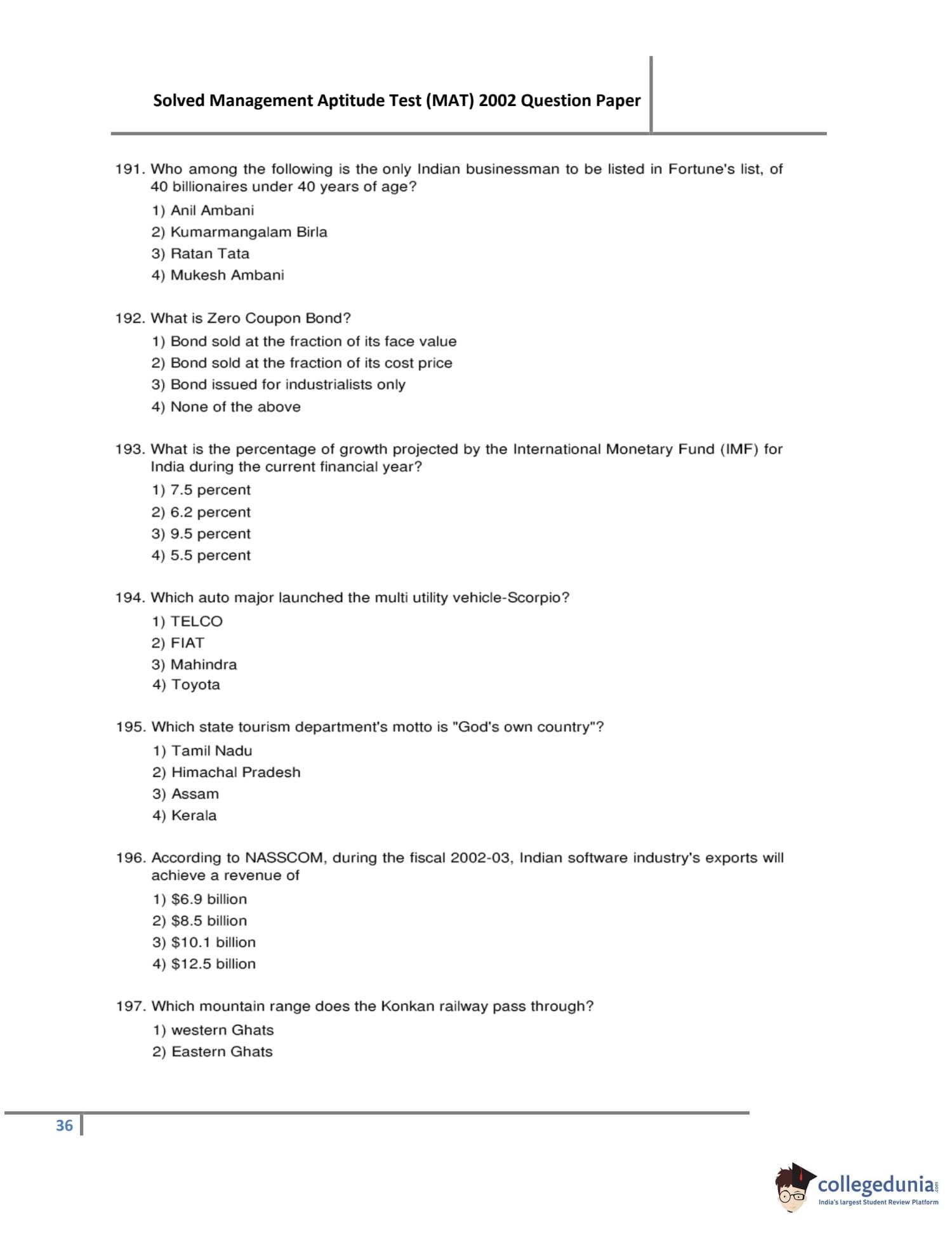| MAT 2002 Question Paper PDF | MAT 2002 Answer Key PDF |