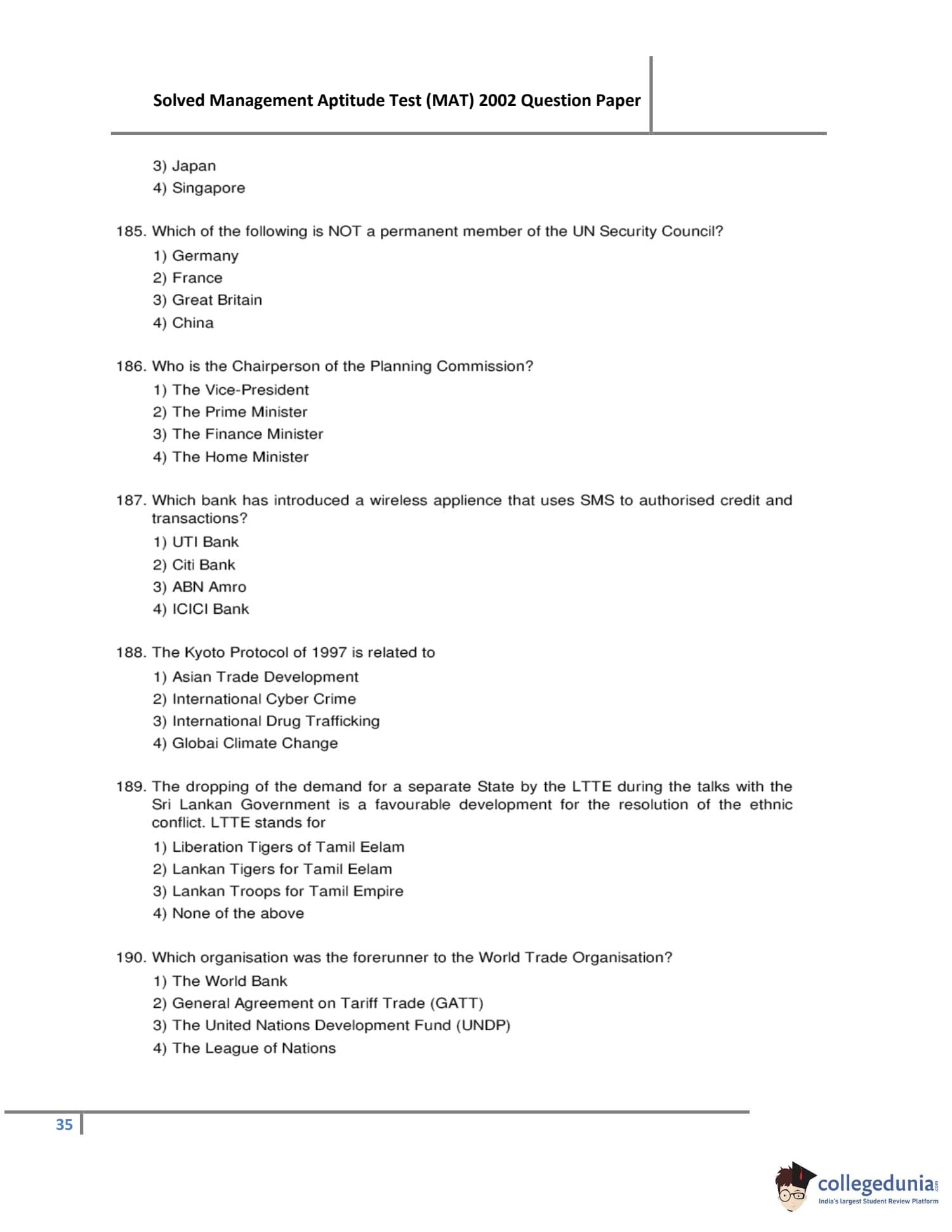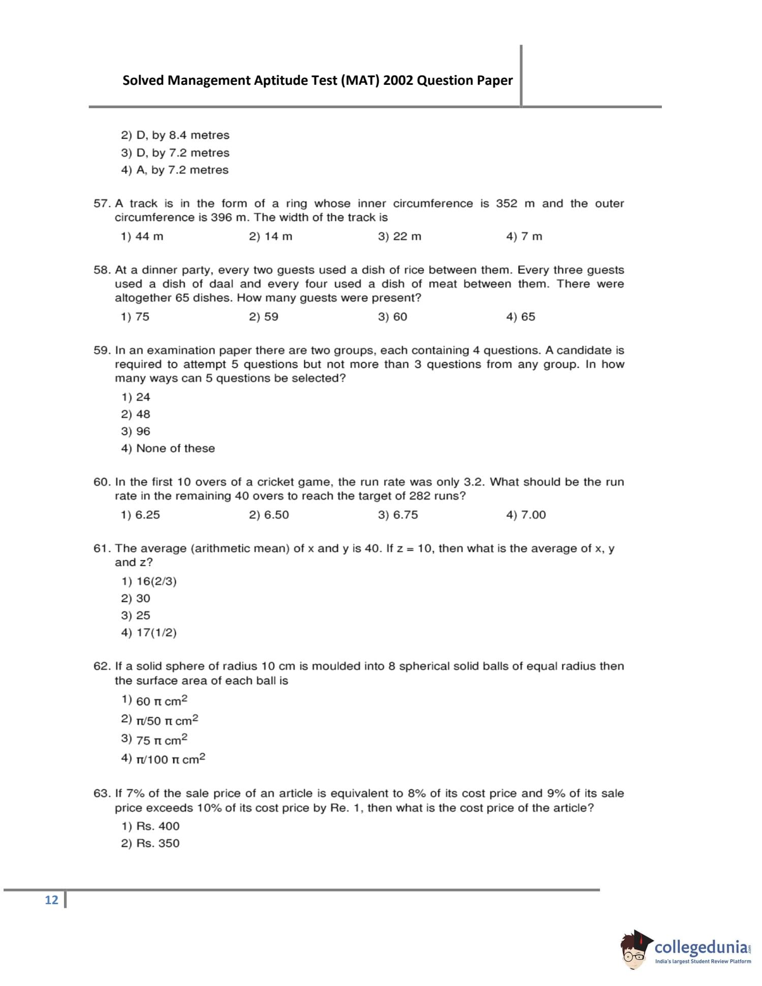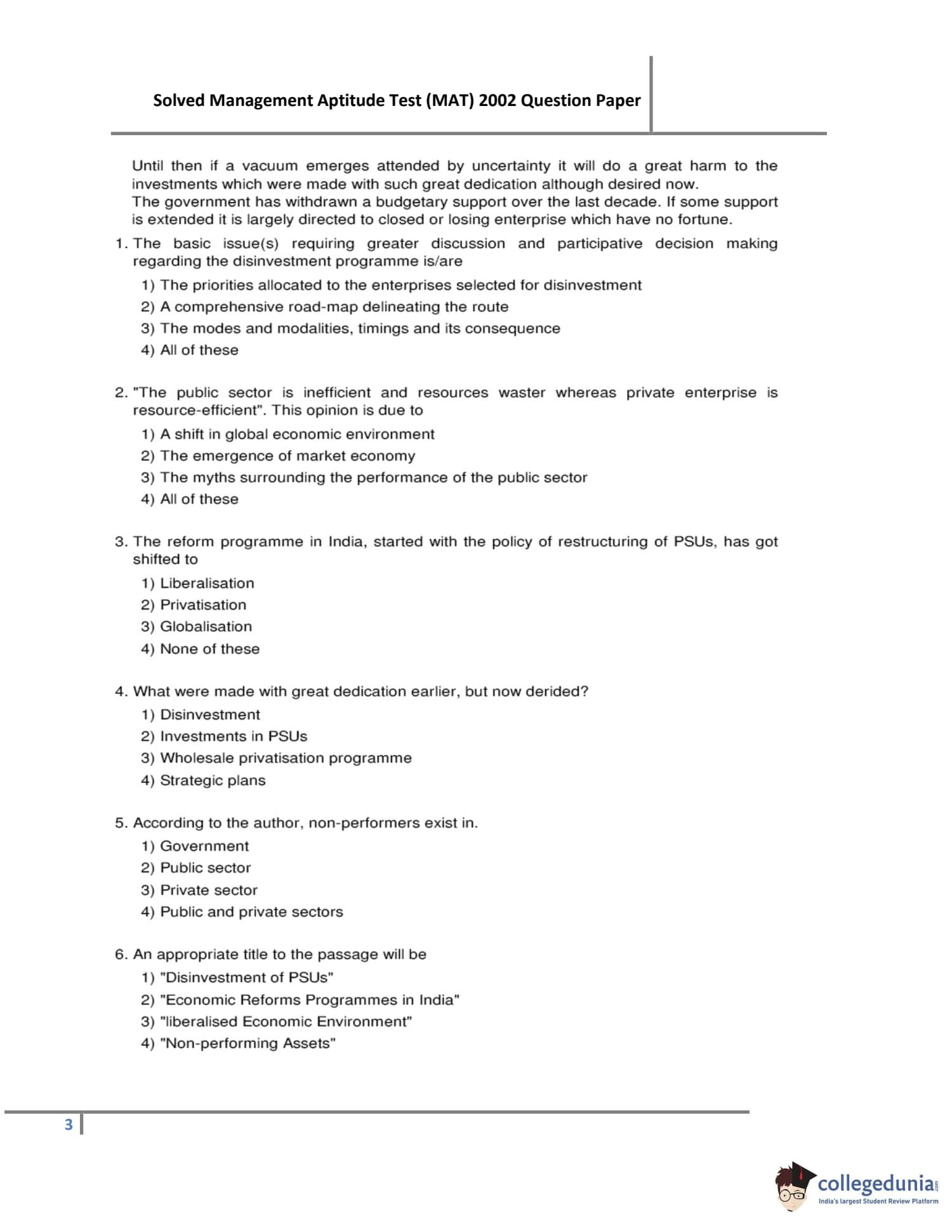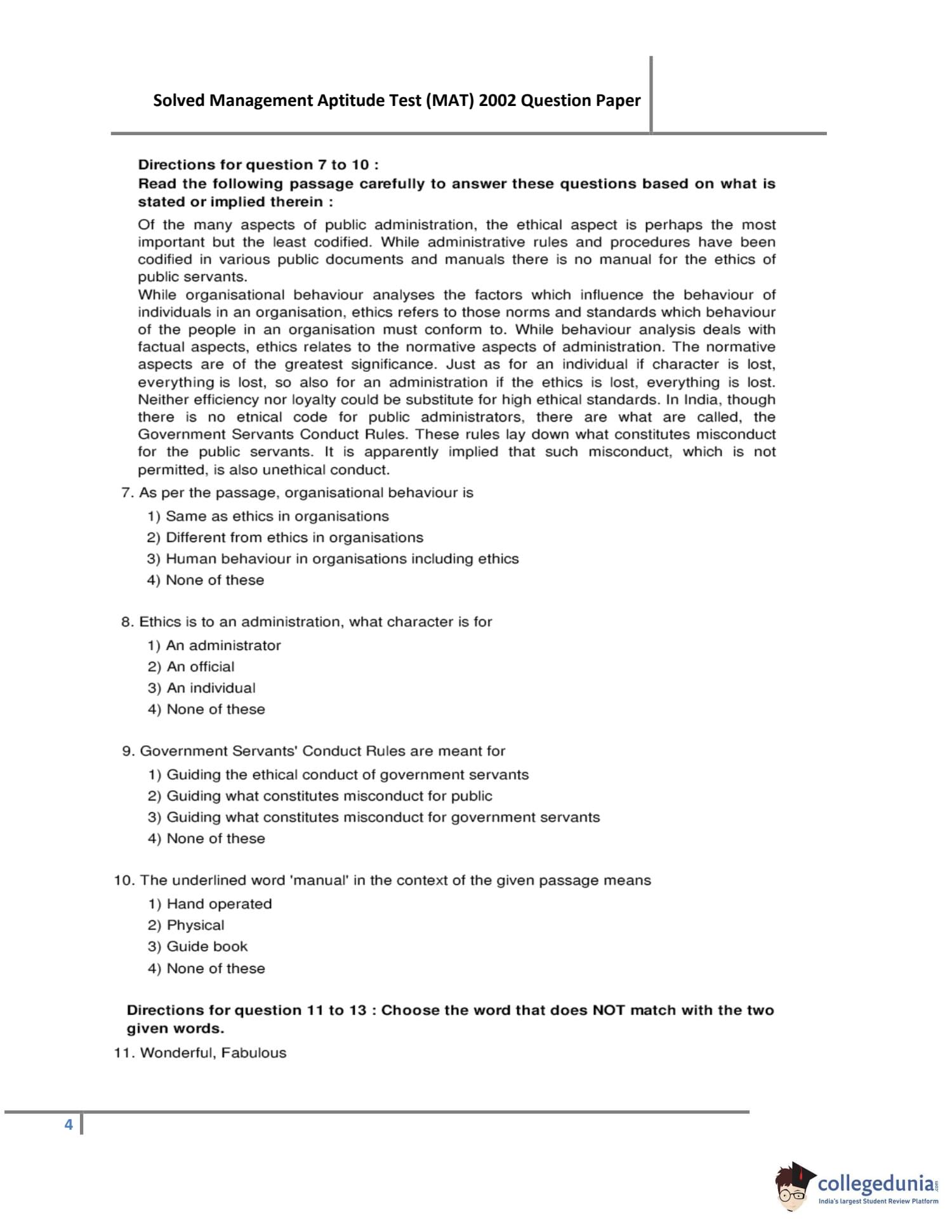 | MAT 2002 Question Paper PDF | MAT 2002 Answer Key PDF |