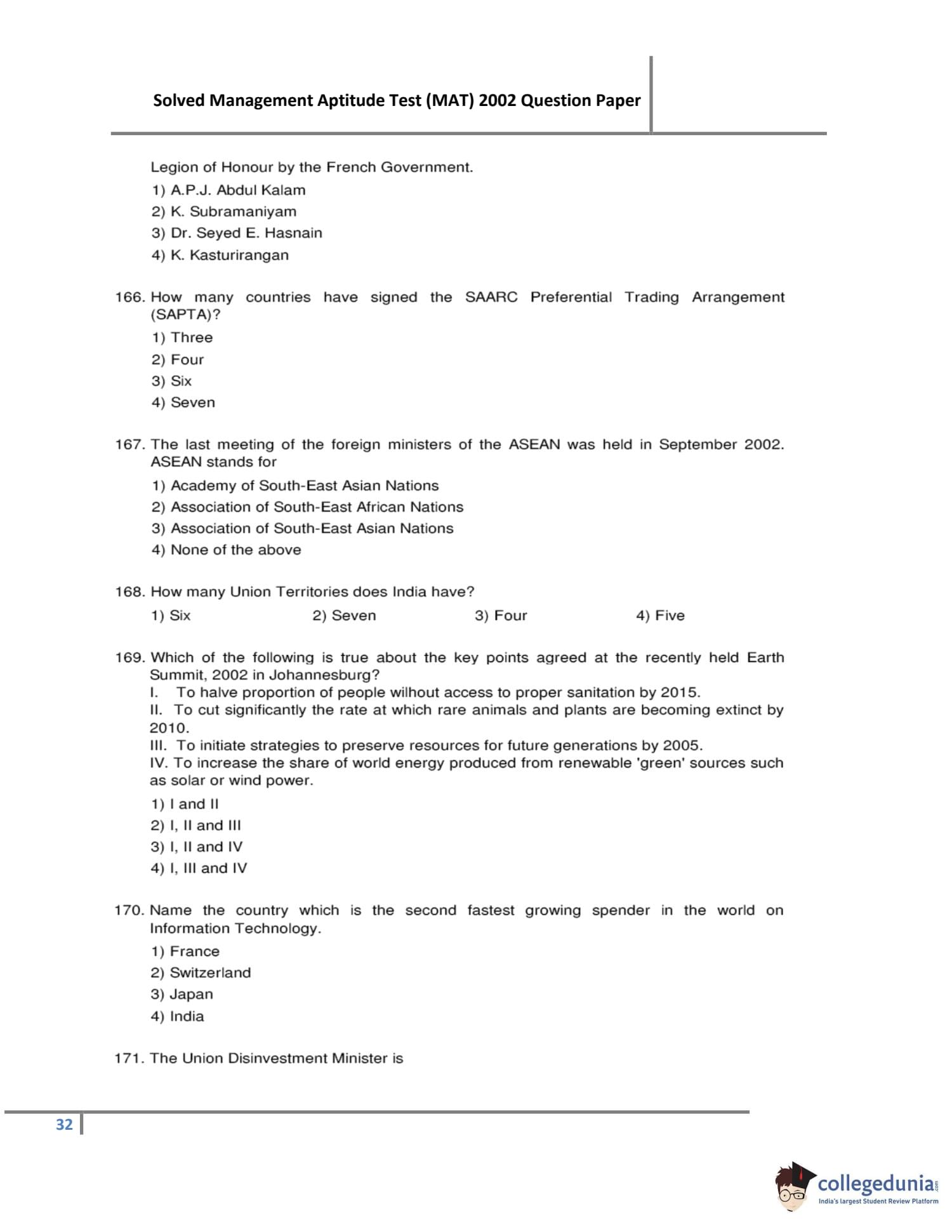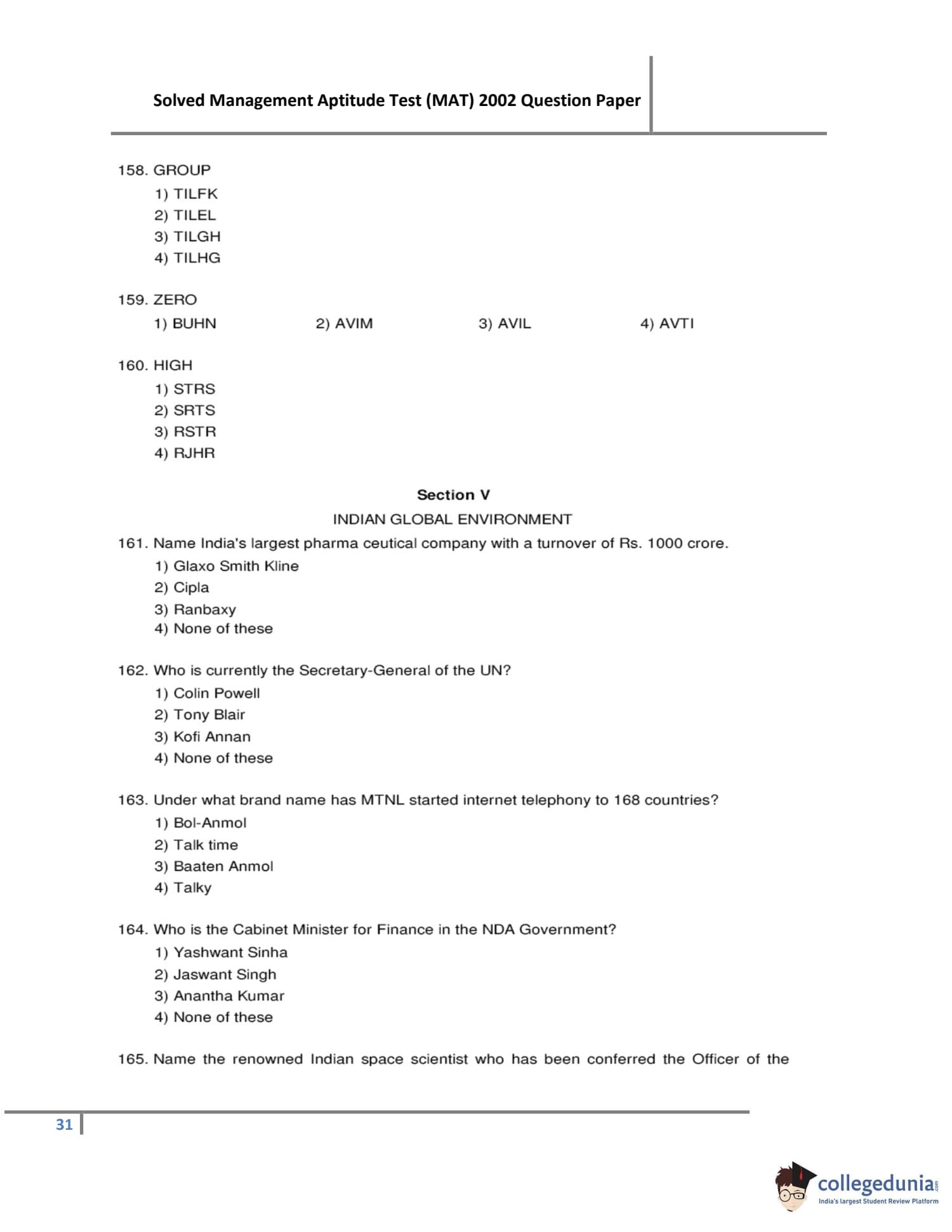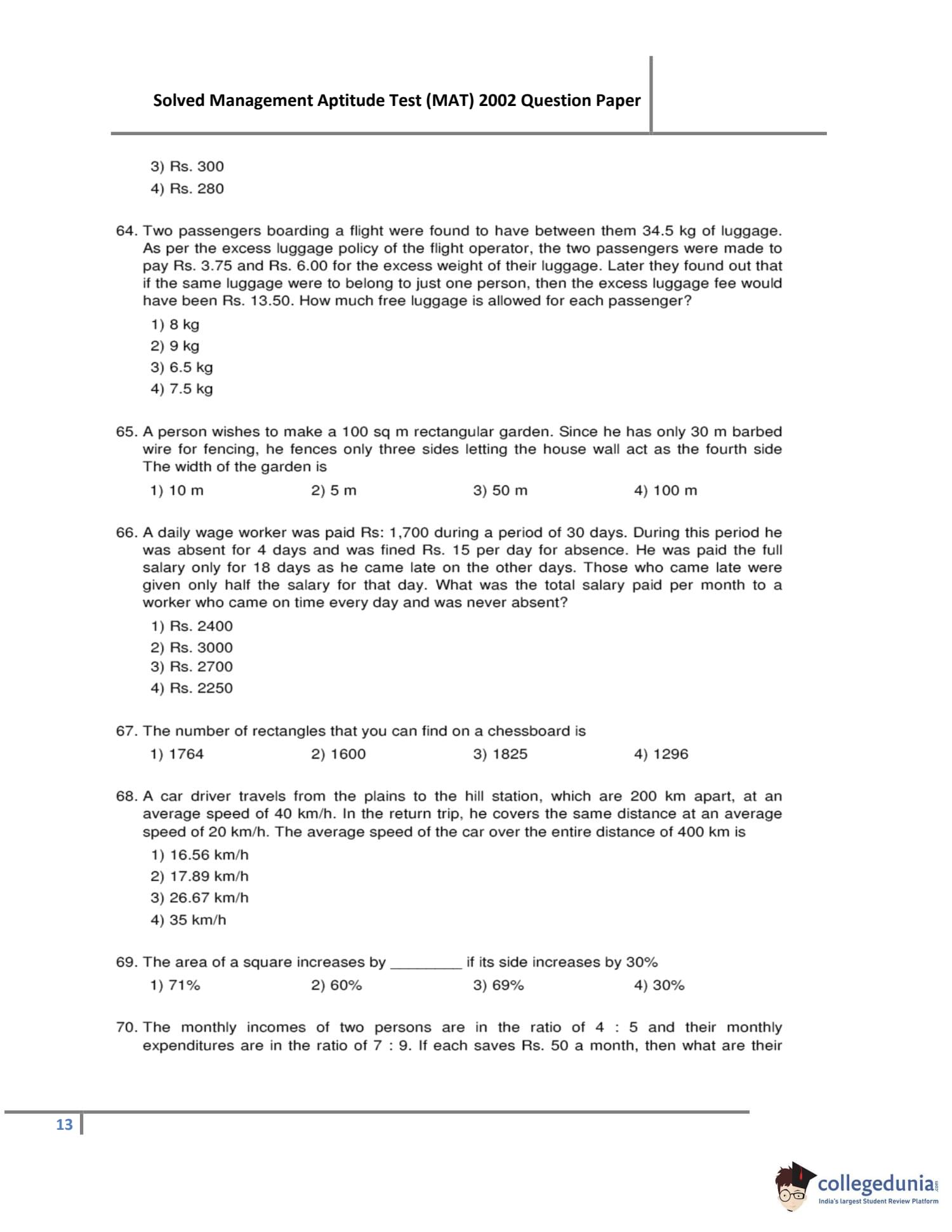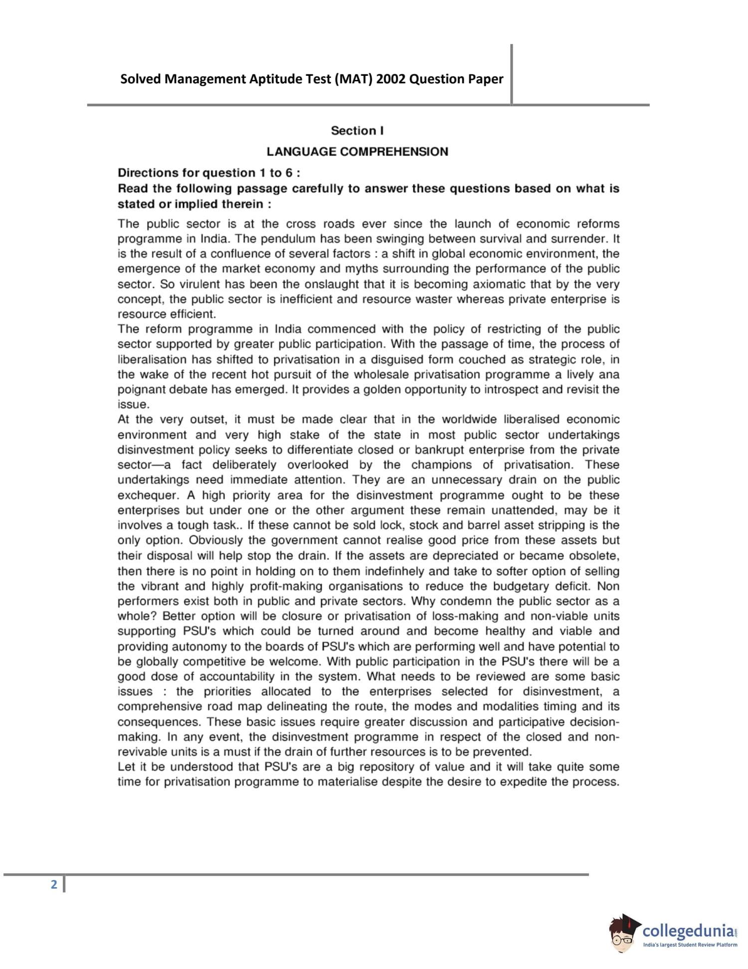 | MAT 2002 Question Paper PDF | MAT 2002 Answer Key PDF |