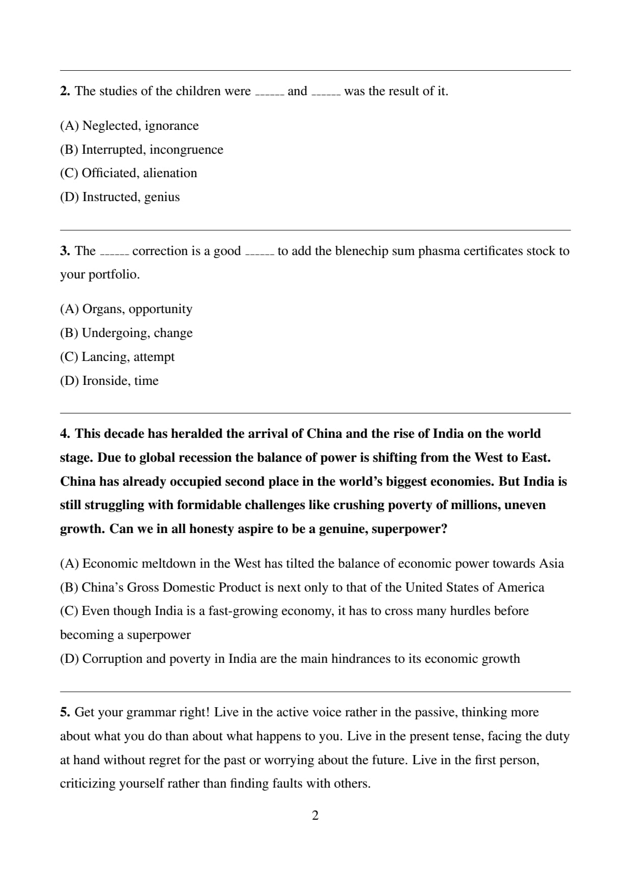 The correct answer is (C) as it directly addresses the challenges India must overcome to become a superpower, even though it is growing economically.