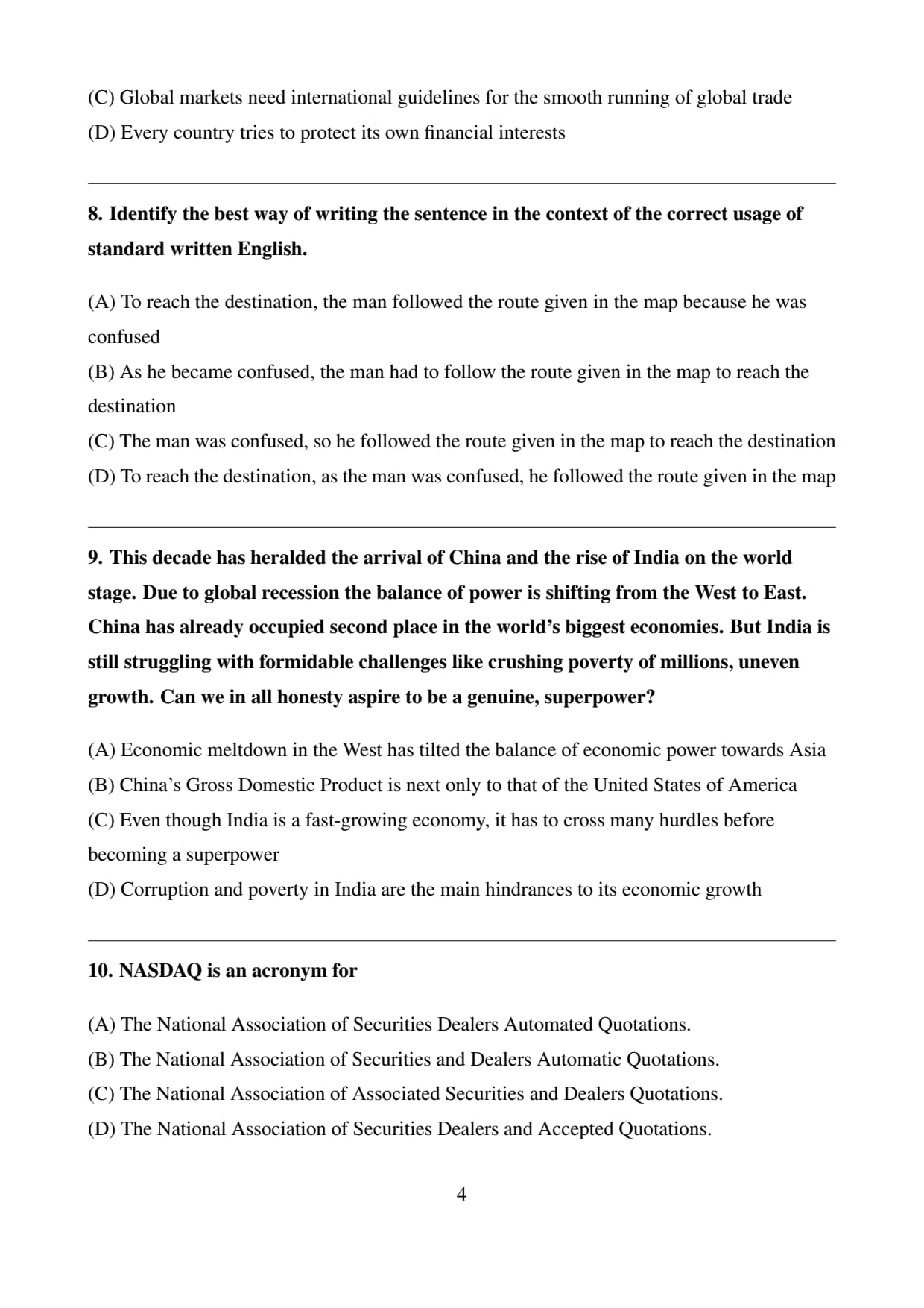 (B) China’s Gross Domestic Product is next only to that of the United States of America: Incorrect. This fact about China is not relevant to India’s struggles to become a superpower.
