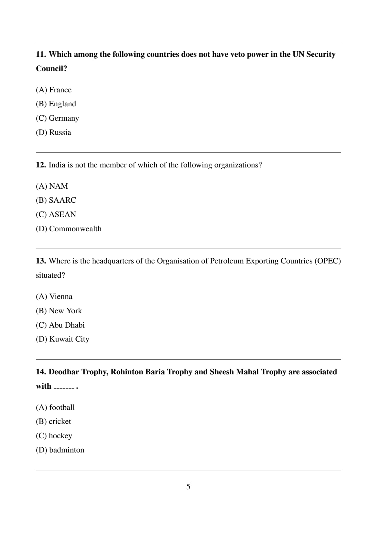 (A) France: Incorrect. France is one of the five permanent members of the UNSC with veto power.