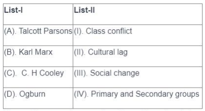 - (A) - (II), (B) - (I), (C) - (IV), (D) - (III). Quick Tip: Direct taxes are levied directly on individuals and organizations, while indirect taxes are passed on to the consumer through the price of goods and services. Understanding their distinctions is key in grasping tax structures.