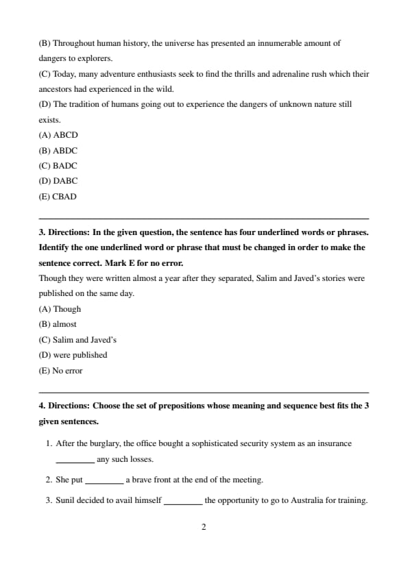 Hence, the correct answer is (B) ABDC. Quick Tip: For jumbled sentence questions, identify: 1) general statements, 2) specific examples, 3) connecting sentences, and 4) concluding remarks. Arrange logically from broad to specific and past to present.