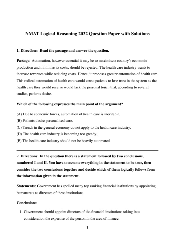 The NMAT 2022 Logical Reasoning Question Paper, along with its detailed solutions, is now available for download in PDF format. This valuable resource is designed to assist candidates preparing for the NMAT (National Management Admission Test), a crucial entrance exam for admission to MBA programs in India and abroad. The Logical Reasoning section of the NMAT assesses candidates' ability to think critically and solve complex problems, focusing on various reasoning skills such as puzzles, seating arrangements, syllogisms, blood relations, and analogies.
