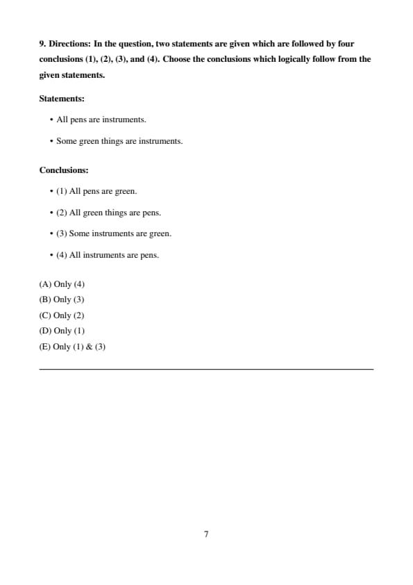 Directions: In the question, two statements are given which are followed by four conclusions (1), (2), (3), and (4). Choose the conclusions which logically follow from the given statements.