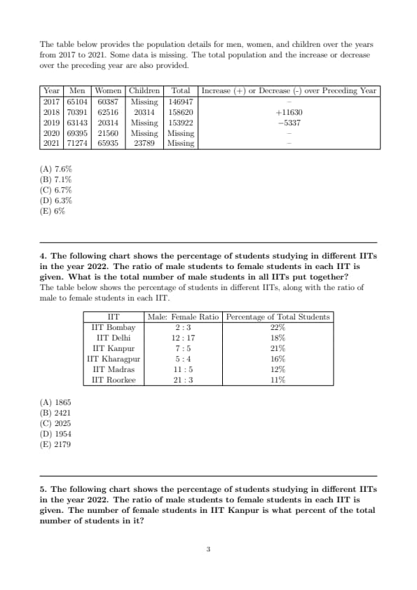 The following table gives the population of a town from 2017 to 2021. Some data is missing from it. The percentage change in the population in 2020 with respect to 2018 is: