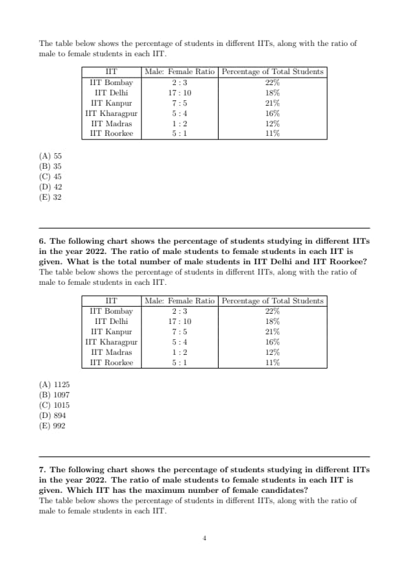 The table below shows the percentage of students in different IITs, along with the ratio of male to female students in each IIT.