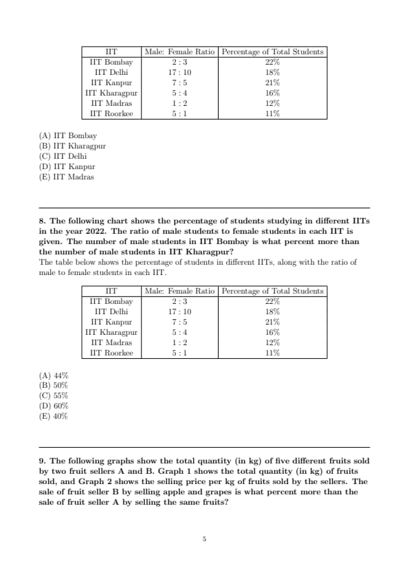 The following chart shows the percentage of students studying in different IITs in the year 2022. The ratio of male students to female students in each IIT is given. Which IIT has the maximum number of female candidates?