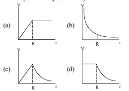 Step 3: For \(r > R\), total mass is constant: \[ v = \sqrt{\frac{GM}{r}} \Rightarrow v \propto \frac{1}{\sqrt{r}} \]