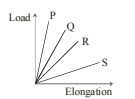 Step 3: The least slope corresponds to the thinnest wire, which is \(S\). Quick Tip: Greater elongation for the same load implies a thinner wire.