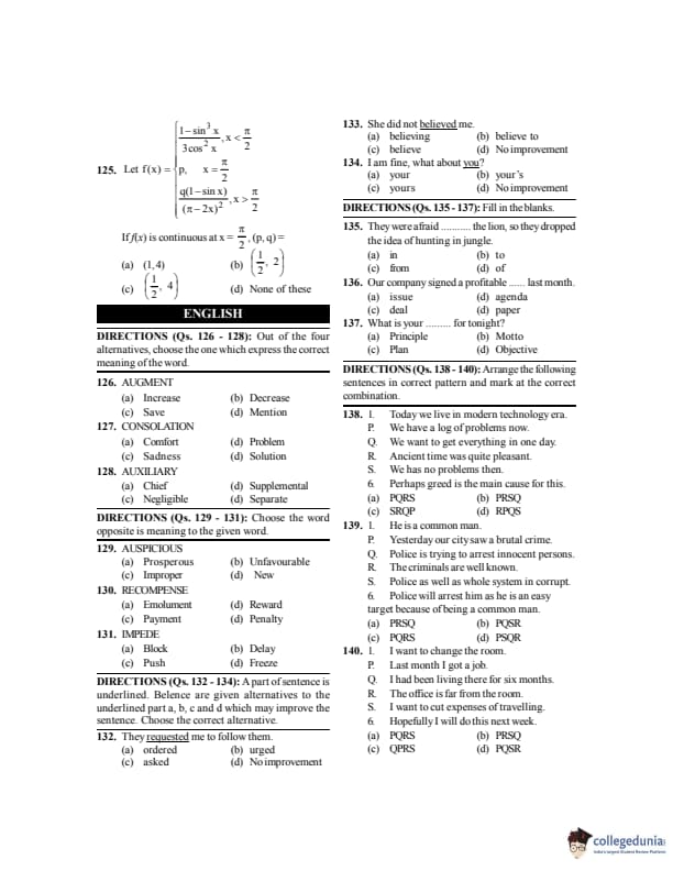 Step 3: Continuity gives: \[ \frac{q}{4}=\frac{1}{2}\Rightarrow q=4 \] Quick Tip: For continuity, LHL = RHL = value of the function.