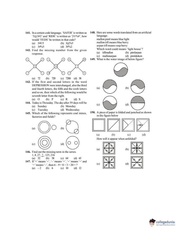 Step 2: Unfolding shows 4 symmetric holes → option (C). Quick Tip: Count folds to predict number of holes.