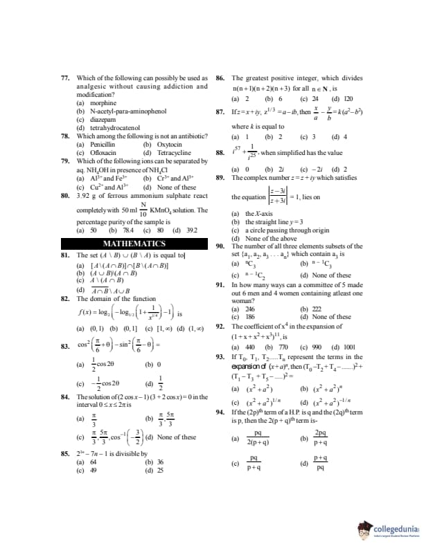 Step 2: Right hand limit as \(x\to \frac{\pi}{2}^+\): \[ \lim_{x\to \pi/2}\frac{q(1-\sin x)}{(\pi-2x)^2} =\frac{q}{4} \]