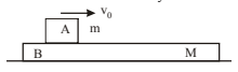 The masses of blocks A and B are \( m \) and \( M \) respectively. Between A and B, there is a constant frictional force \( F \) and B can slide on a smooth horizontal surface. A is set in motion with velocity \( v_0 \) while B is at rest. What is the distance moved by A relative to B before they move with the same velocity?