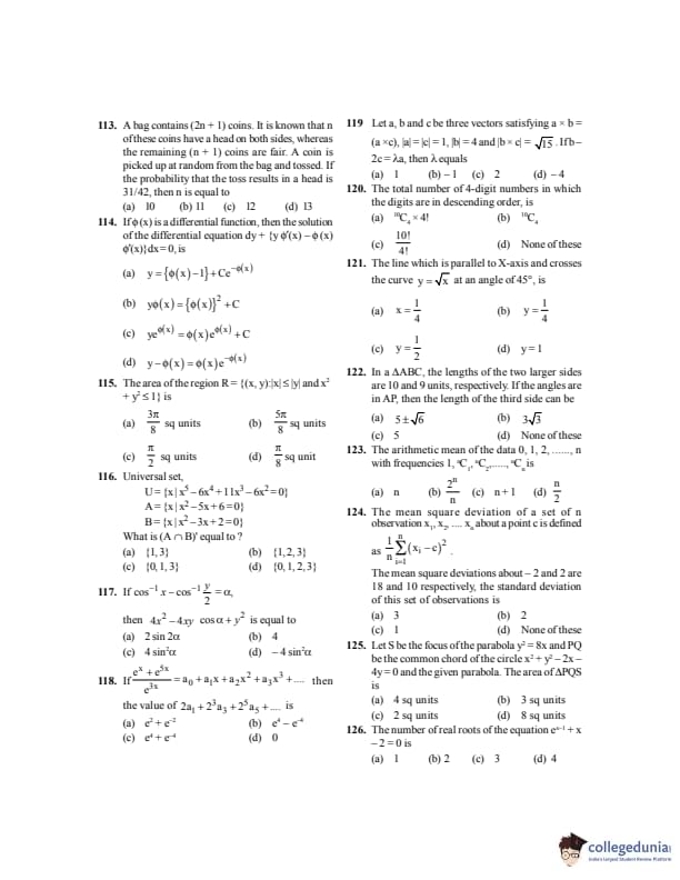 Subtracting, \[ 8\mu=8\Rightarrow \mu=1 \] \[ \sigma^2=10-(1-2)^2=9\Rightarrow \sigma=3 \] Quick Tip: Mean square deviation = variance + square of shift.