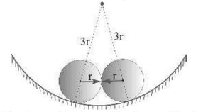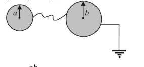 Two conducting shells of radius \(a\) and \(b\) are connected by a conducting wire as shown in figure. The capacity of system is: