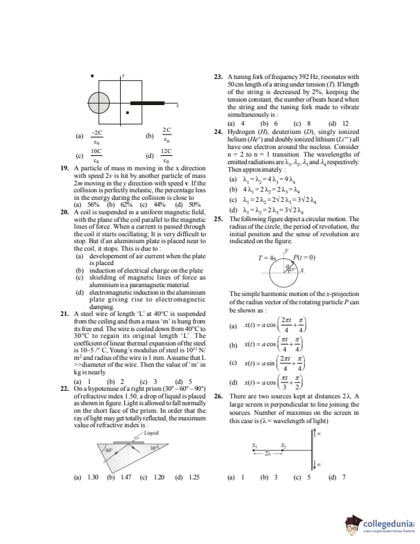If radius is doubled: \[ M' = 2M \] Quick Tip: In capillary rise problems: \[ Mass of liquid risen \propto radius of tube \]