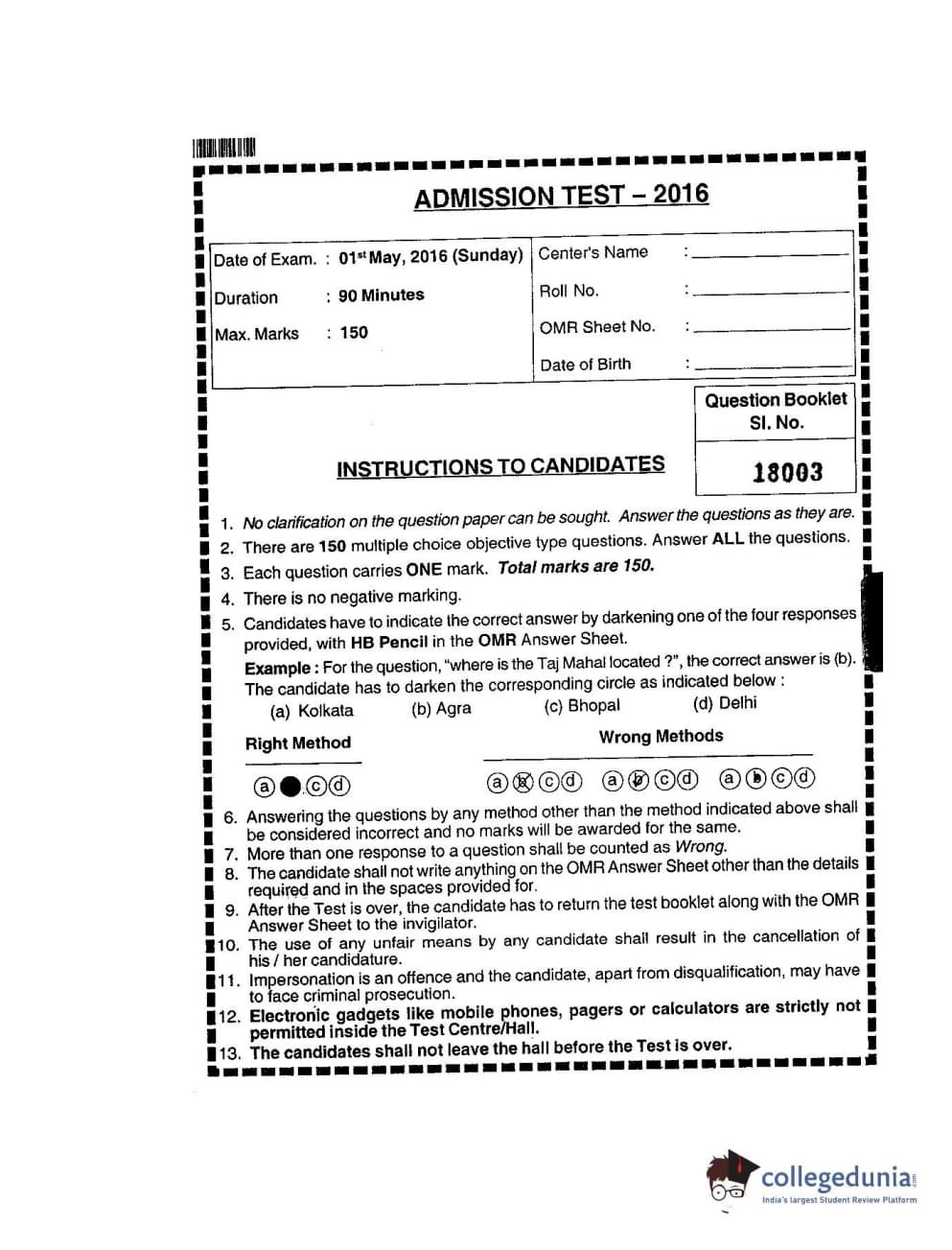 AILET 2016 BA LLB Question paper with answer key pdf conducted on May 1, 2016 in Afternoon Session (3 PM to 4:30 PM) is available for download. The exam was successfully organized by Delhi National Law University. The question paper comprised a total of 150 questions divided among five sections.