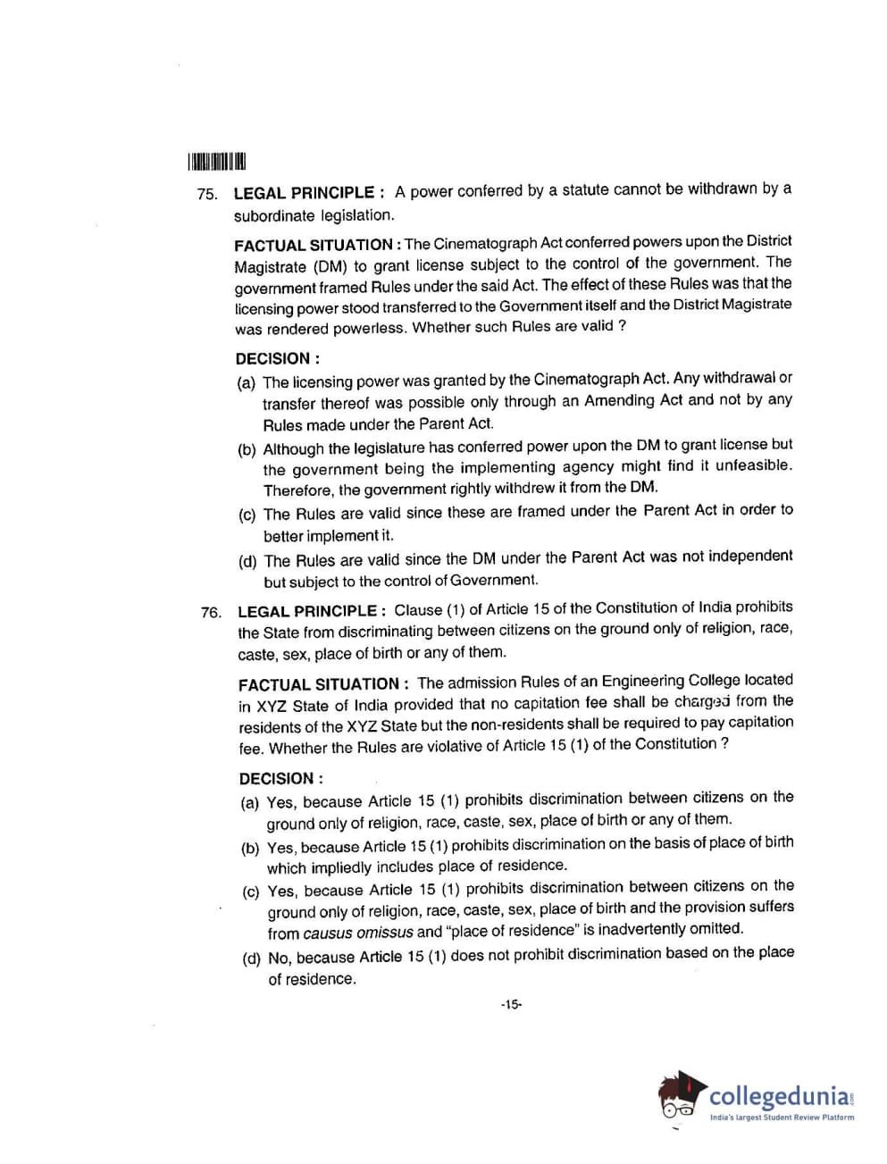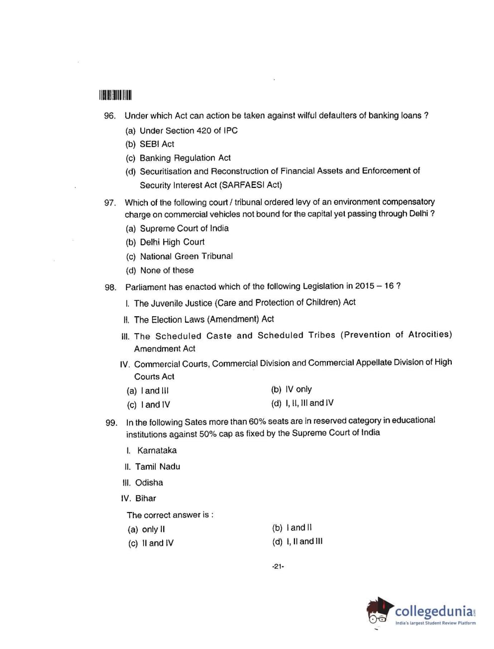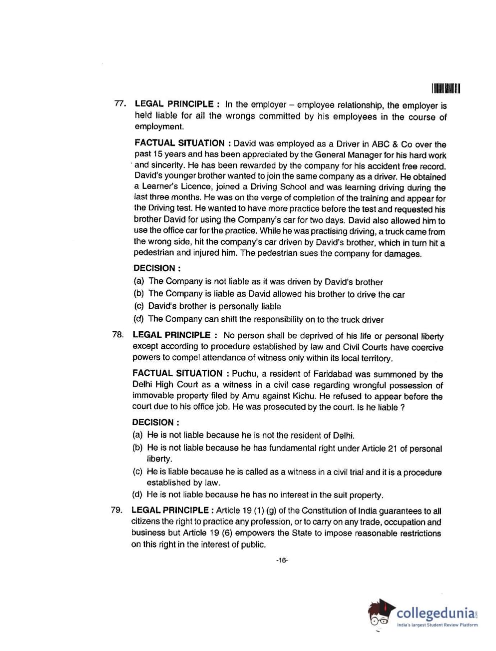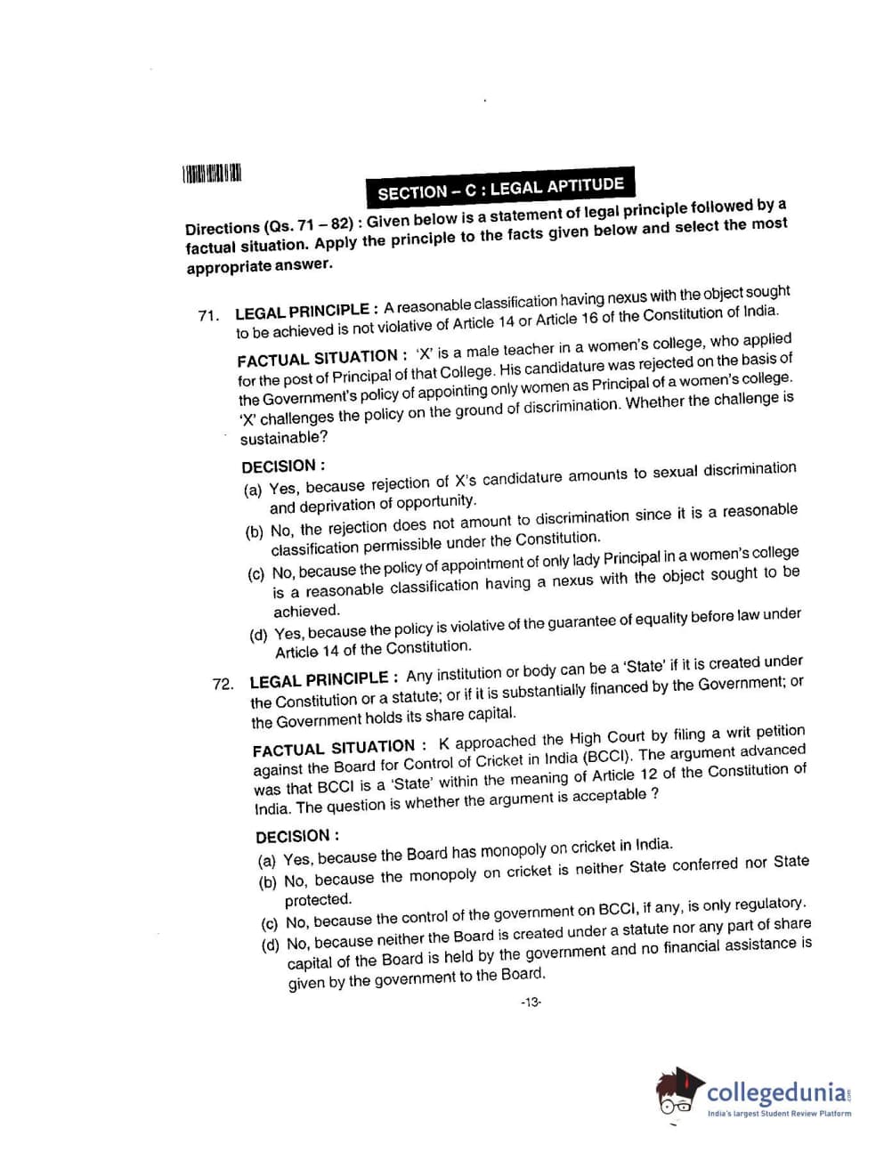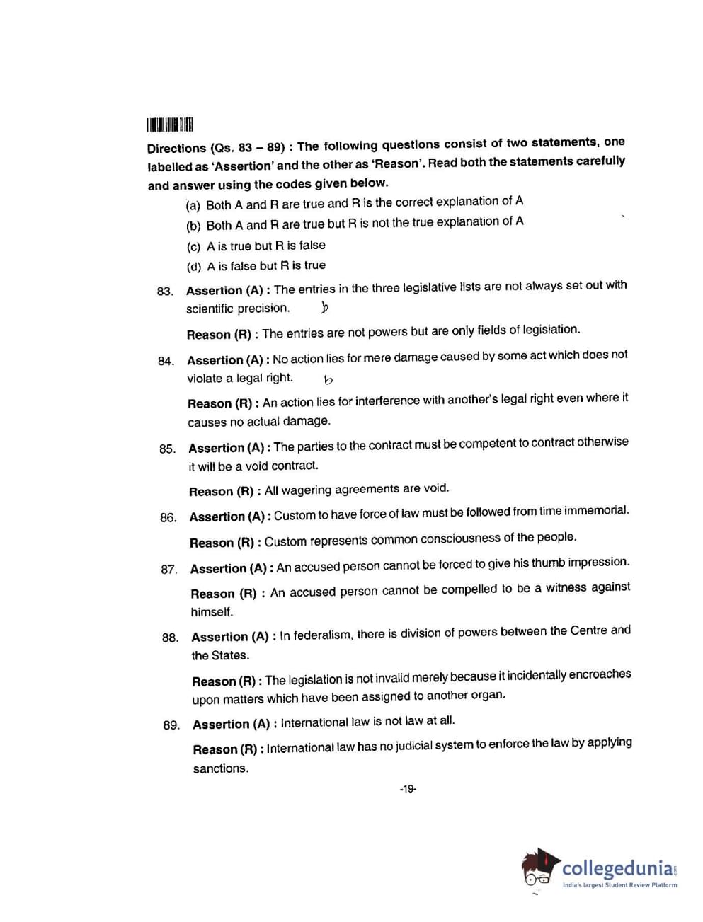 AILET 2016 BA LLB Question Paper with Answer Key PDFs Afternoon Session