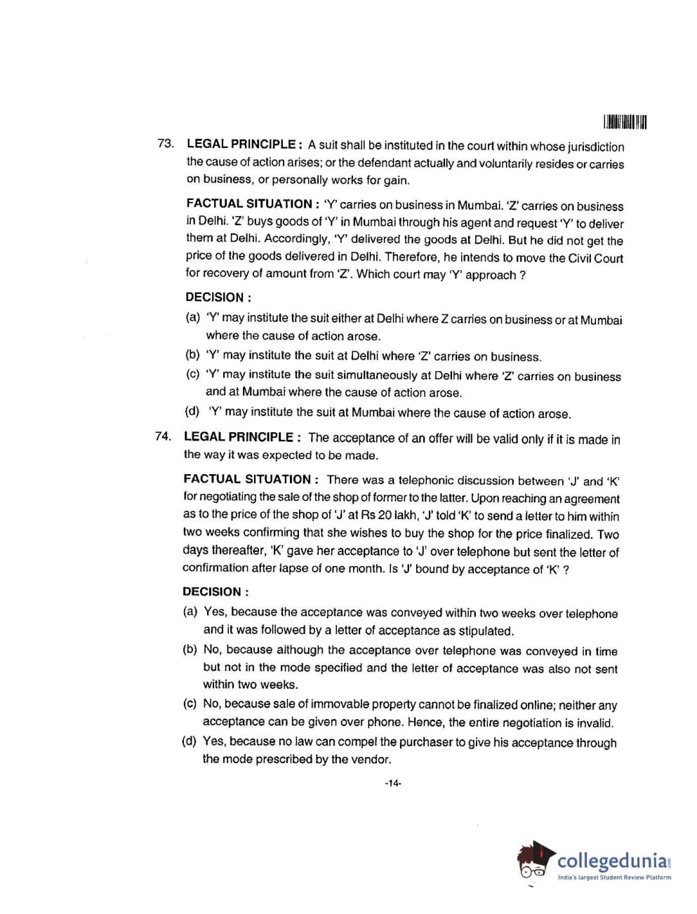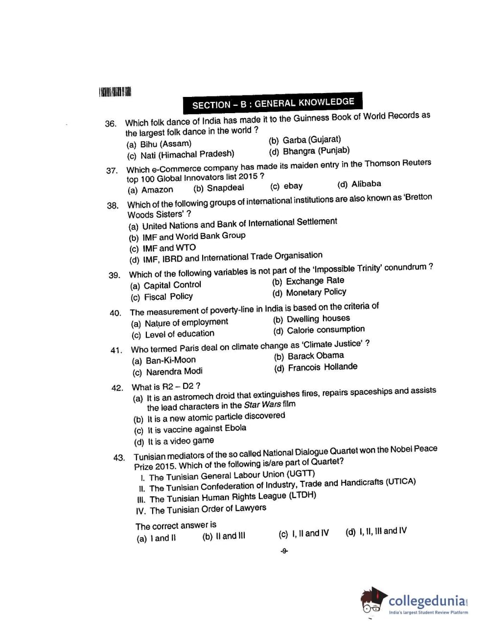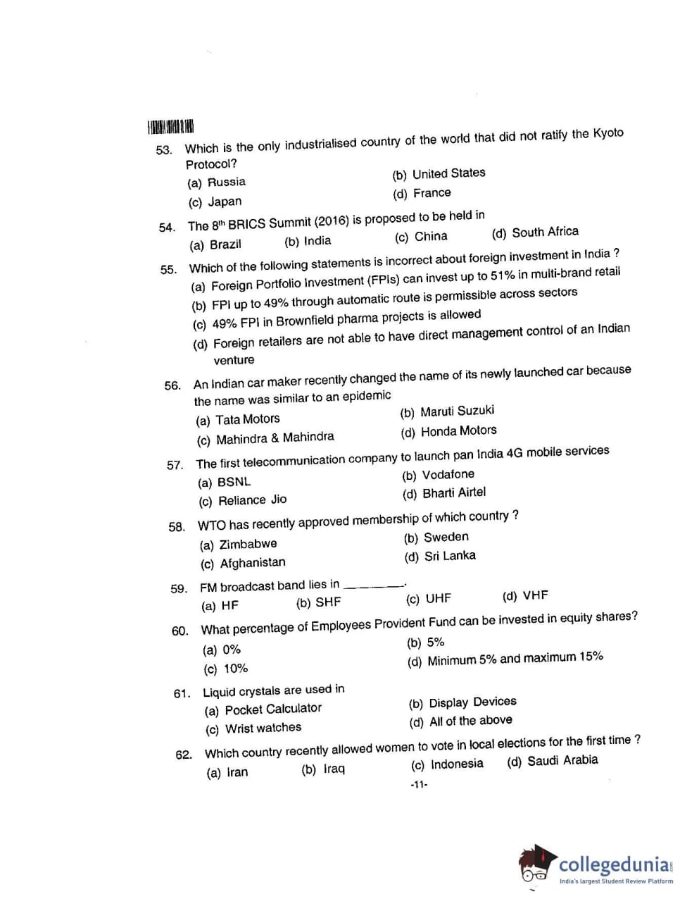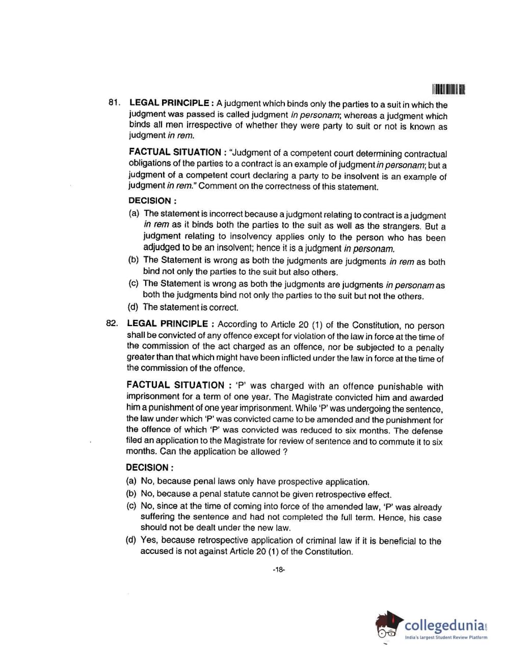 AILET 2016 BA LLB Question Paper with Answer Key PDFs Afternoon Session