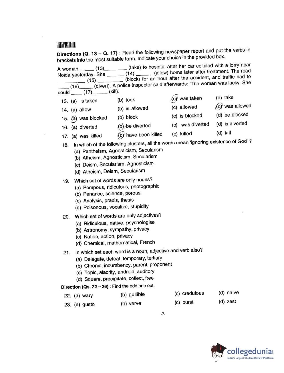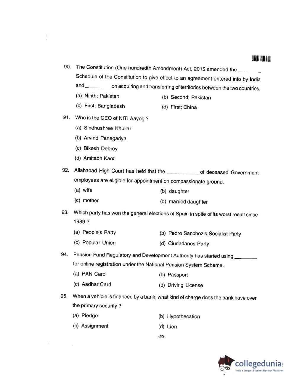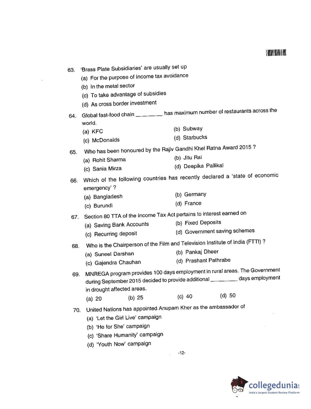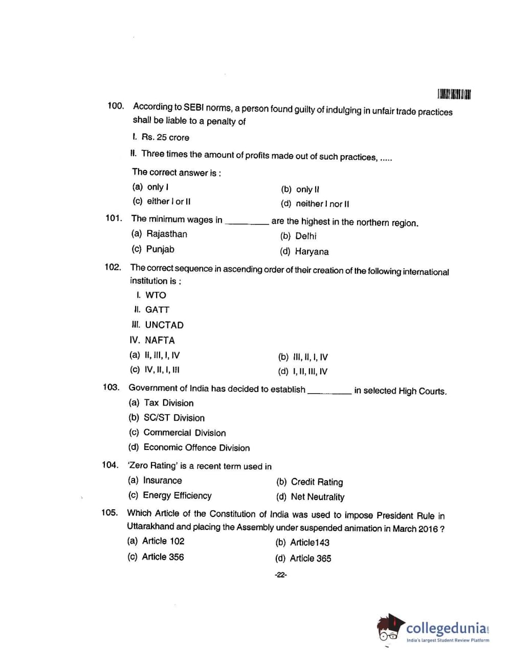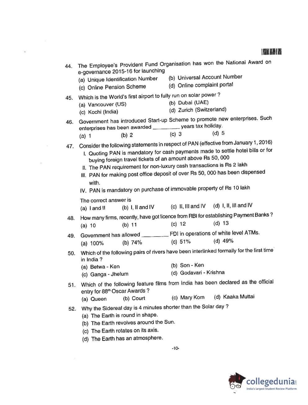 AILET 2016 BA LLB Question Paper with Answer Key PDFs Afternoon Session