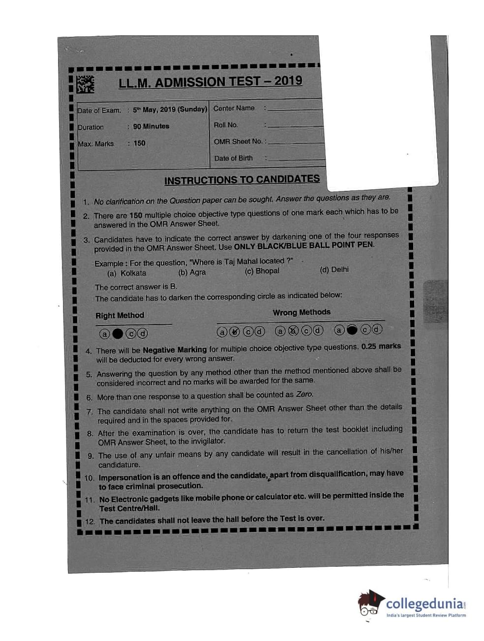 | AILET 2019 LLM Question Paper PDF | AILET 2019 LLM Answer Key PDF |