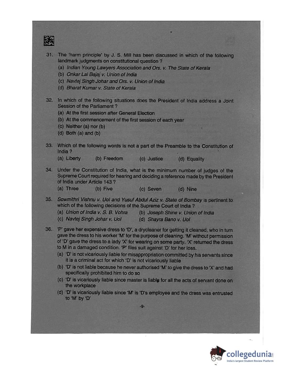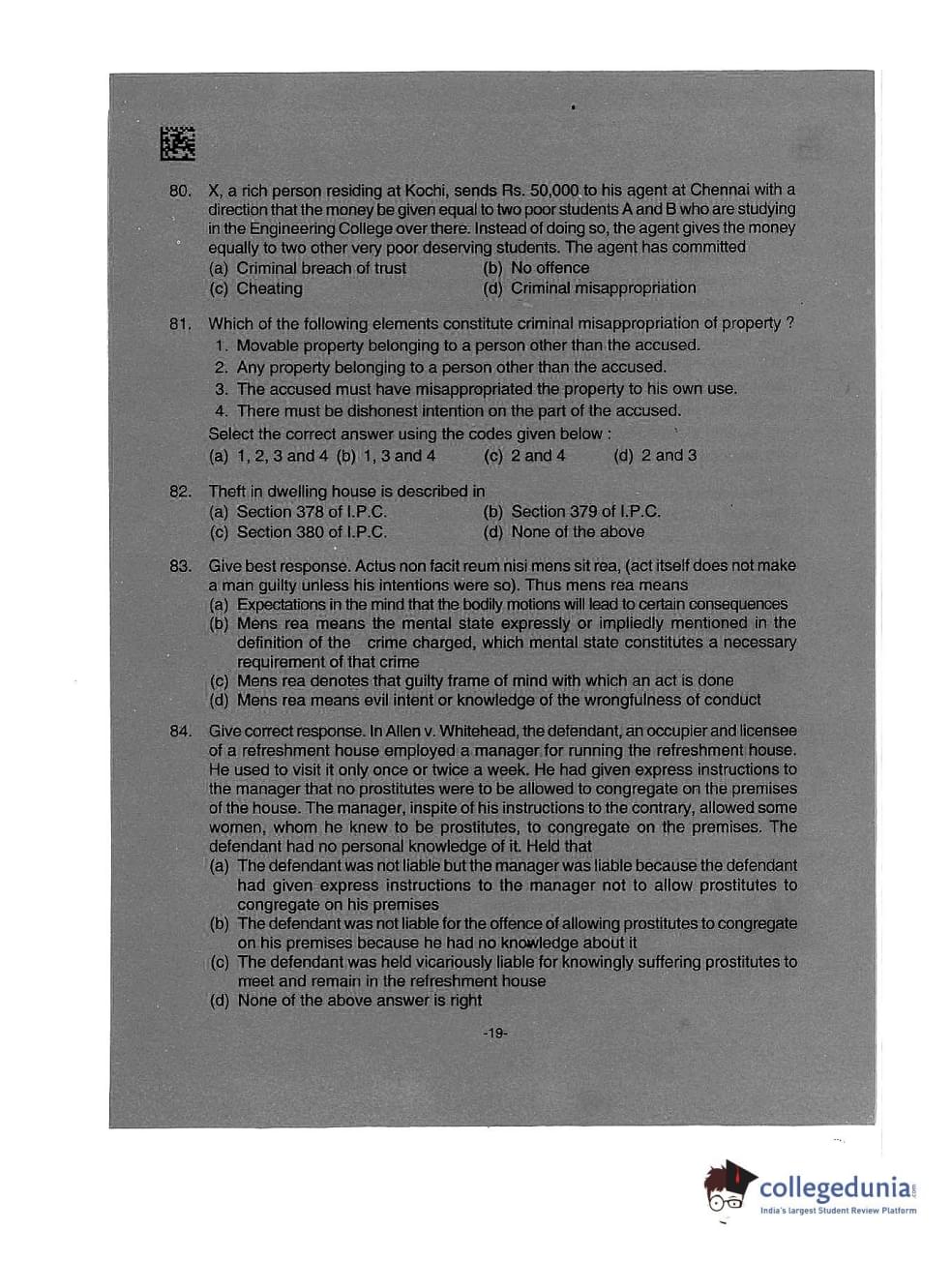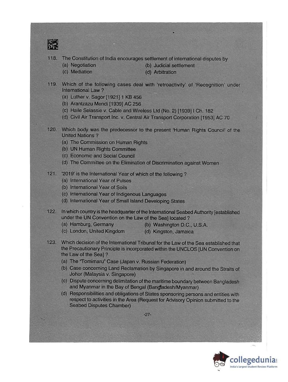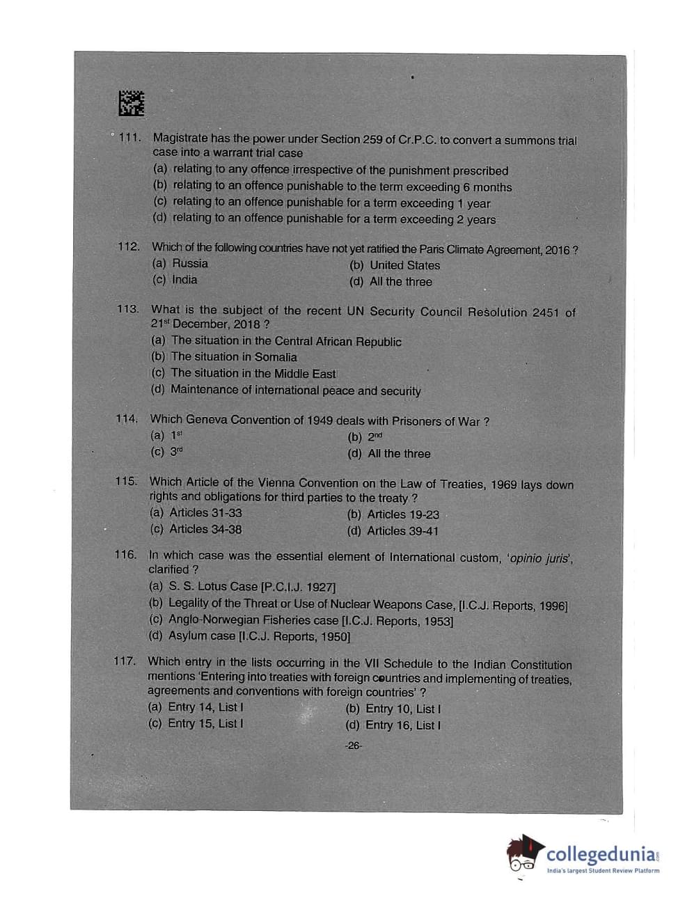 AILET 2019 LLM Question Paper with Answer Key PDFs Afternoon Session