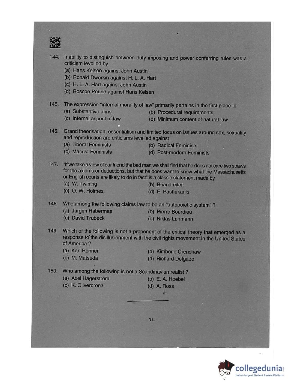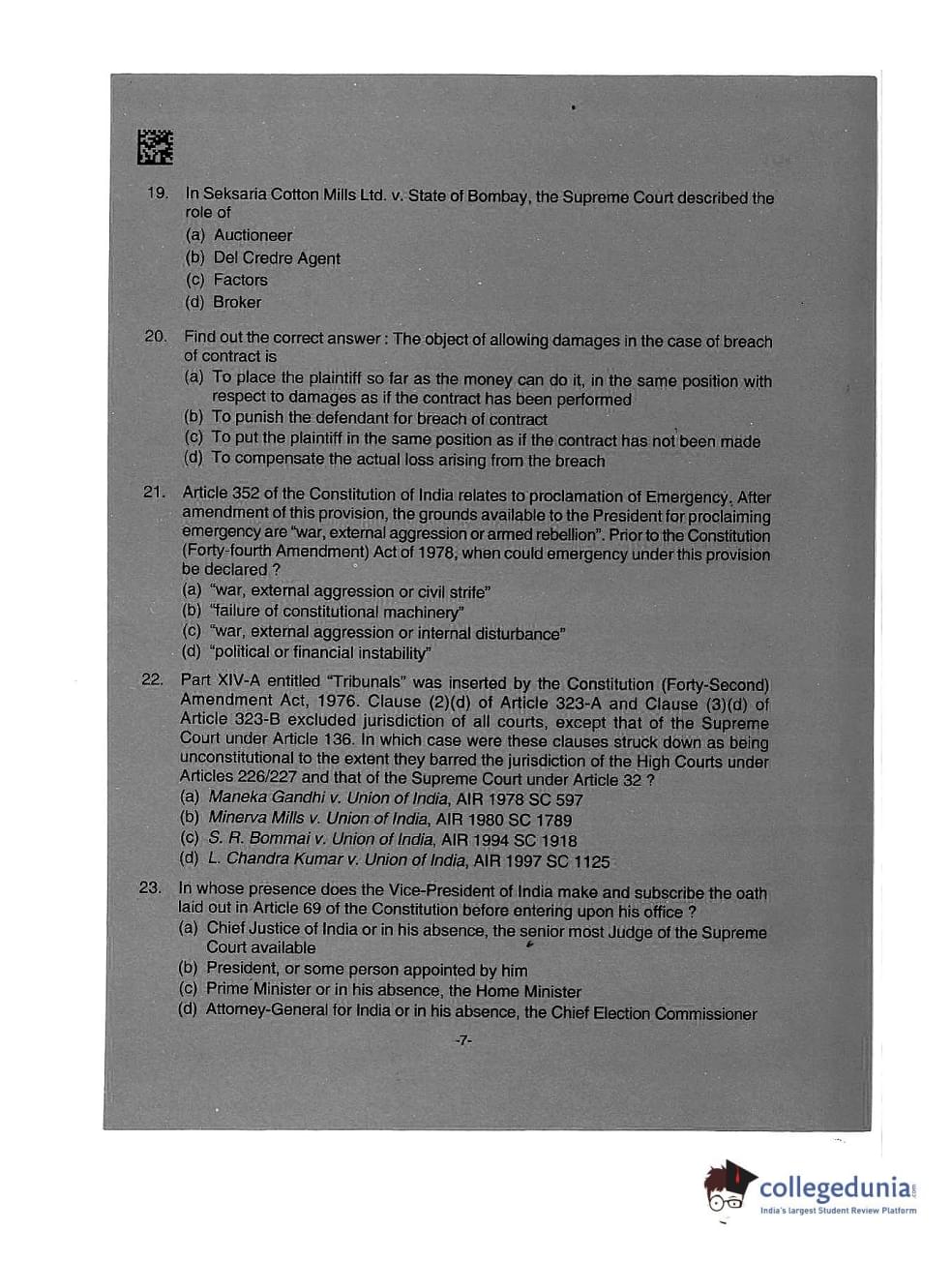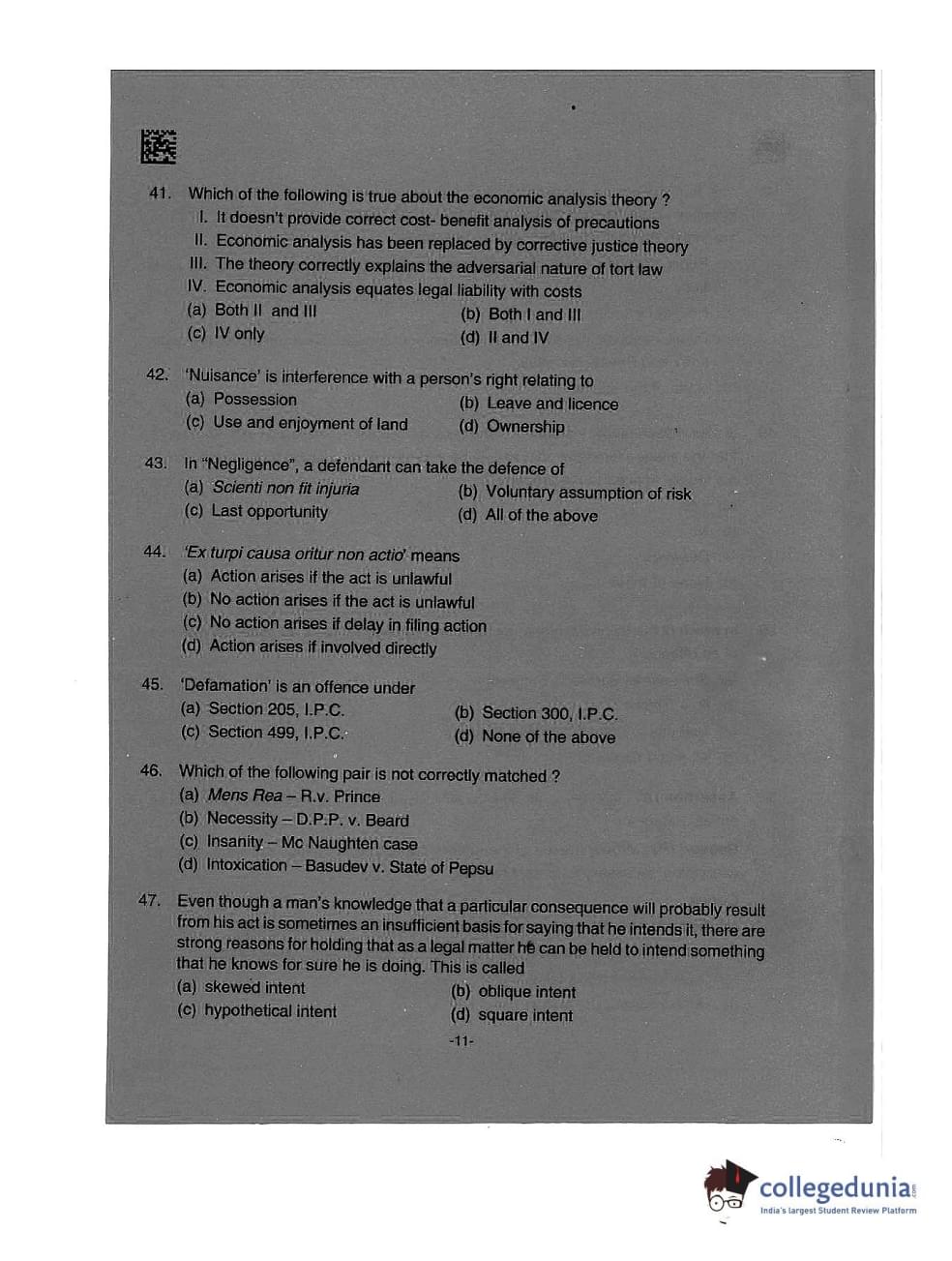 AILET 2019 LLM Question Paper with Answer Key PDFs Afternoon Session
