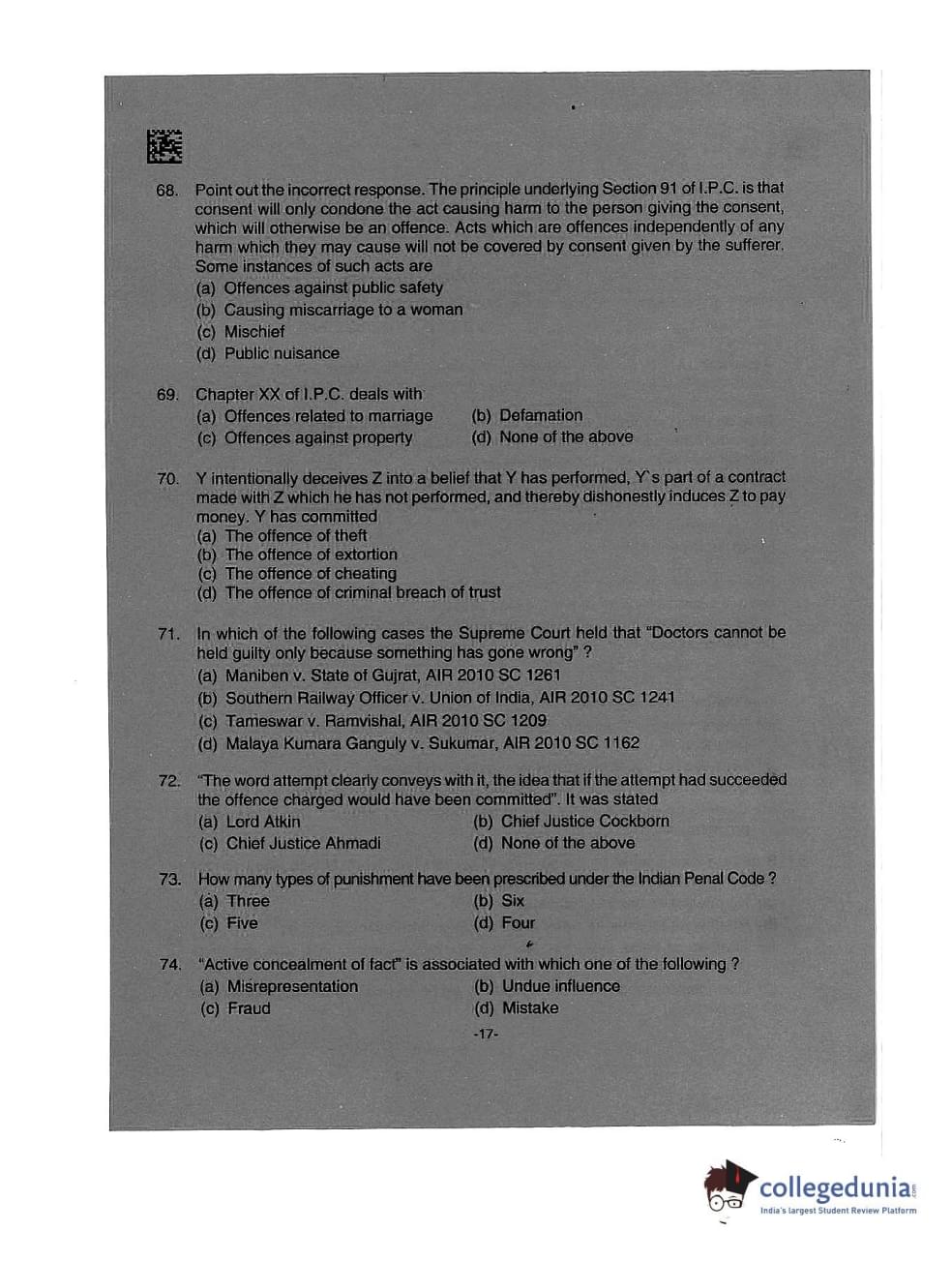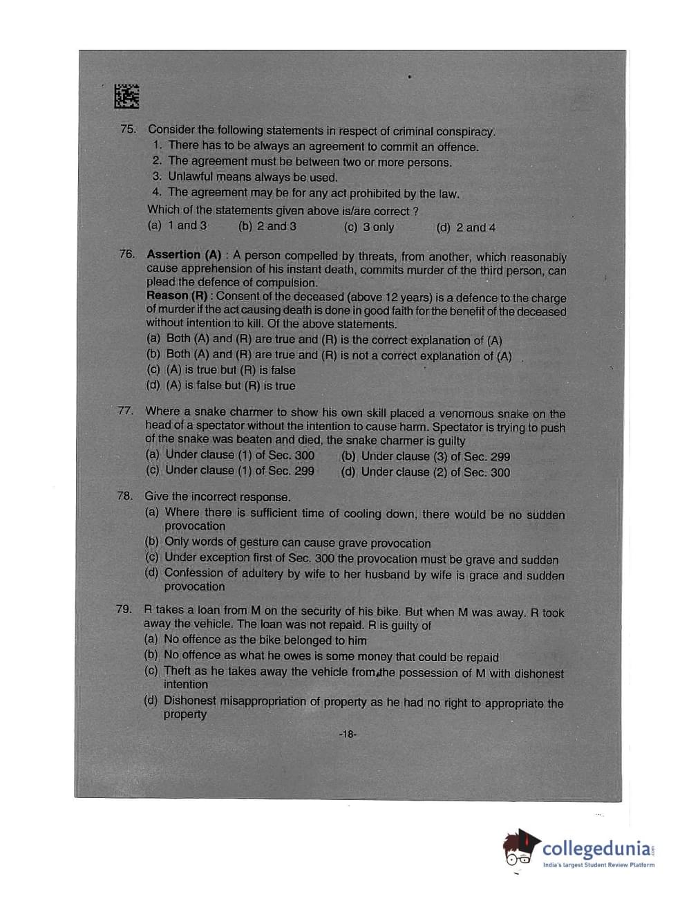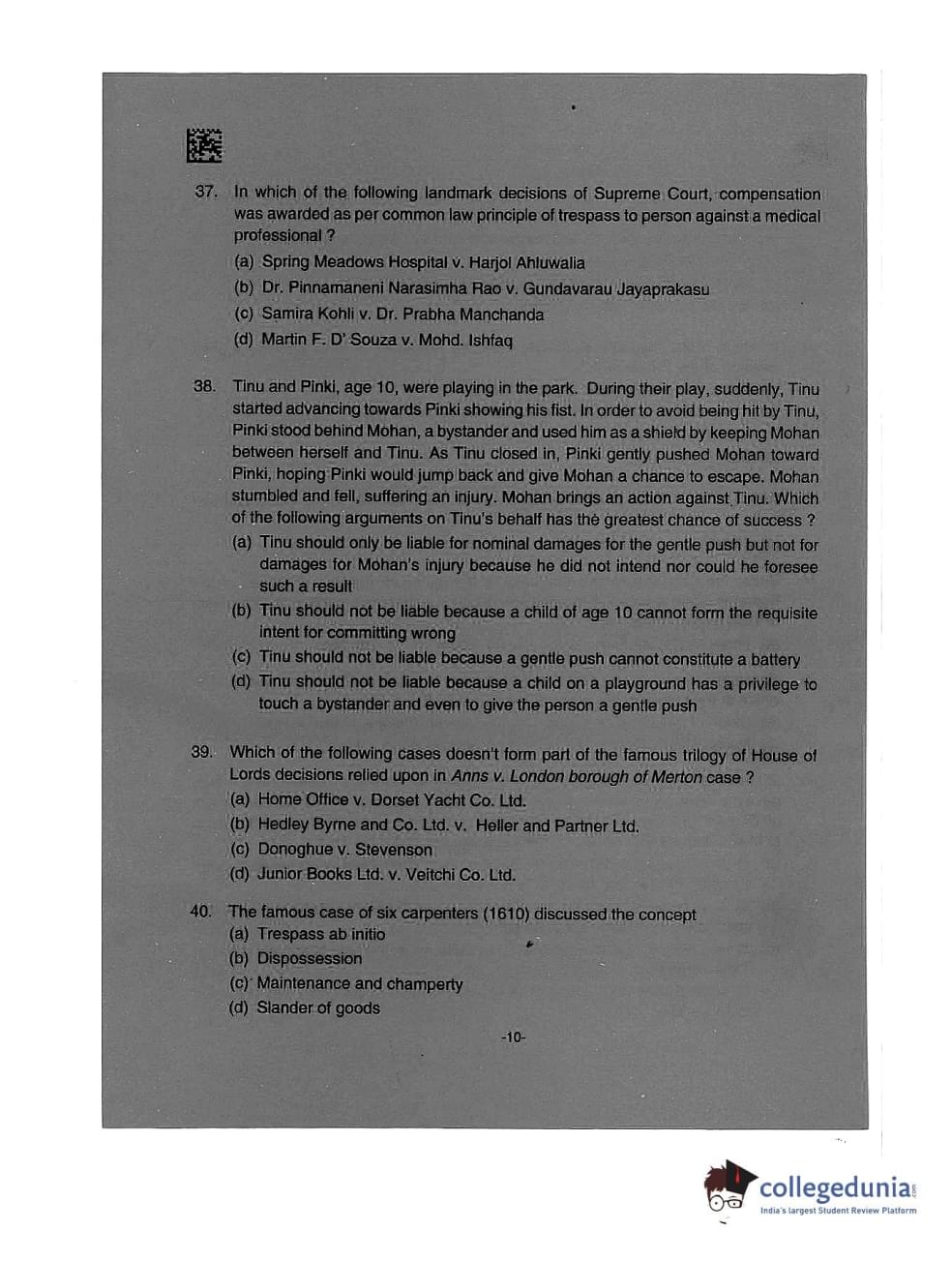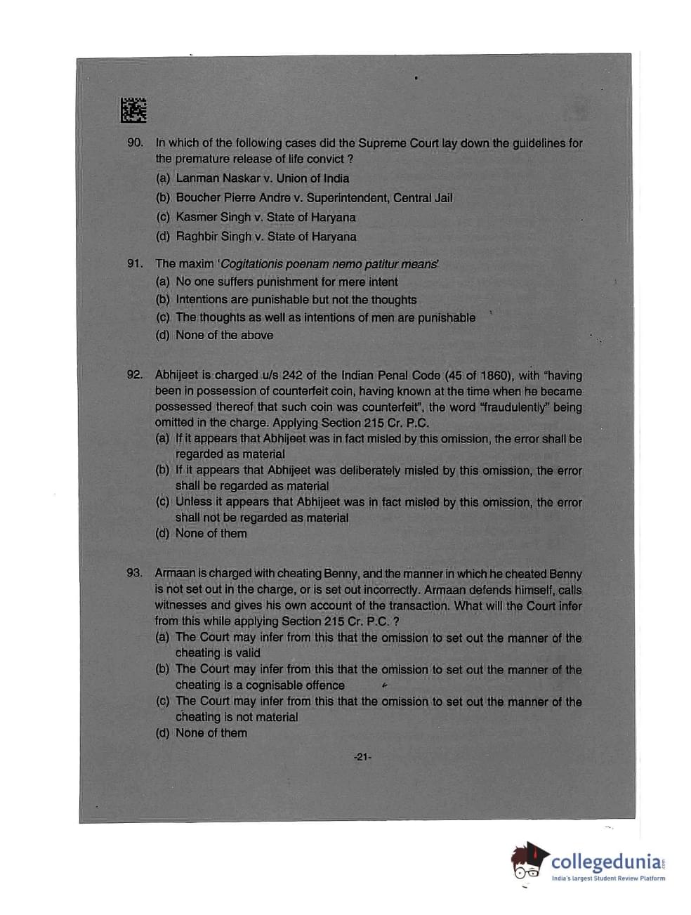 AILET 2019 LLM Question Paper with Answer Key PDFs Afternoon Session