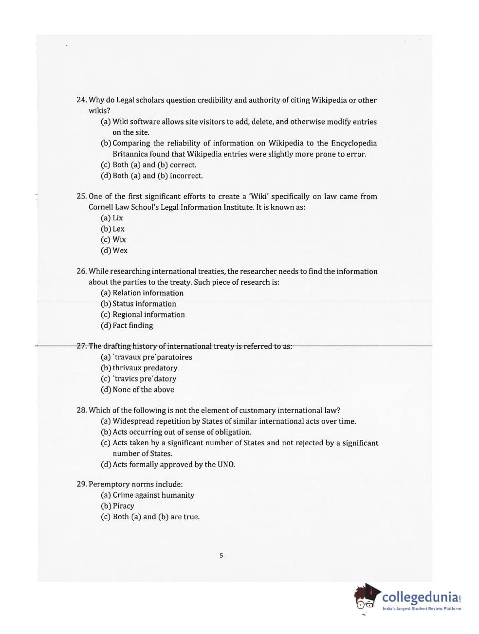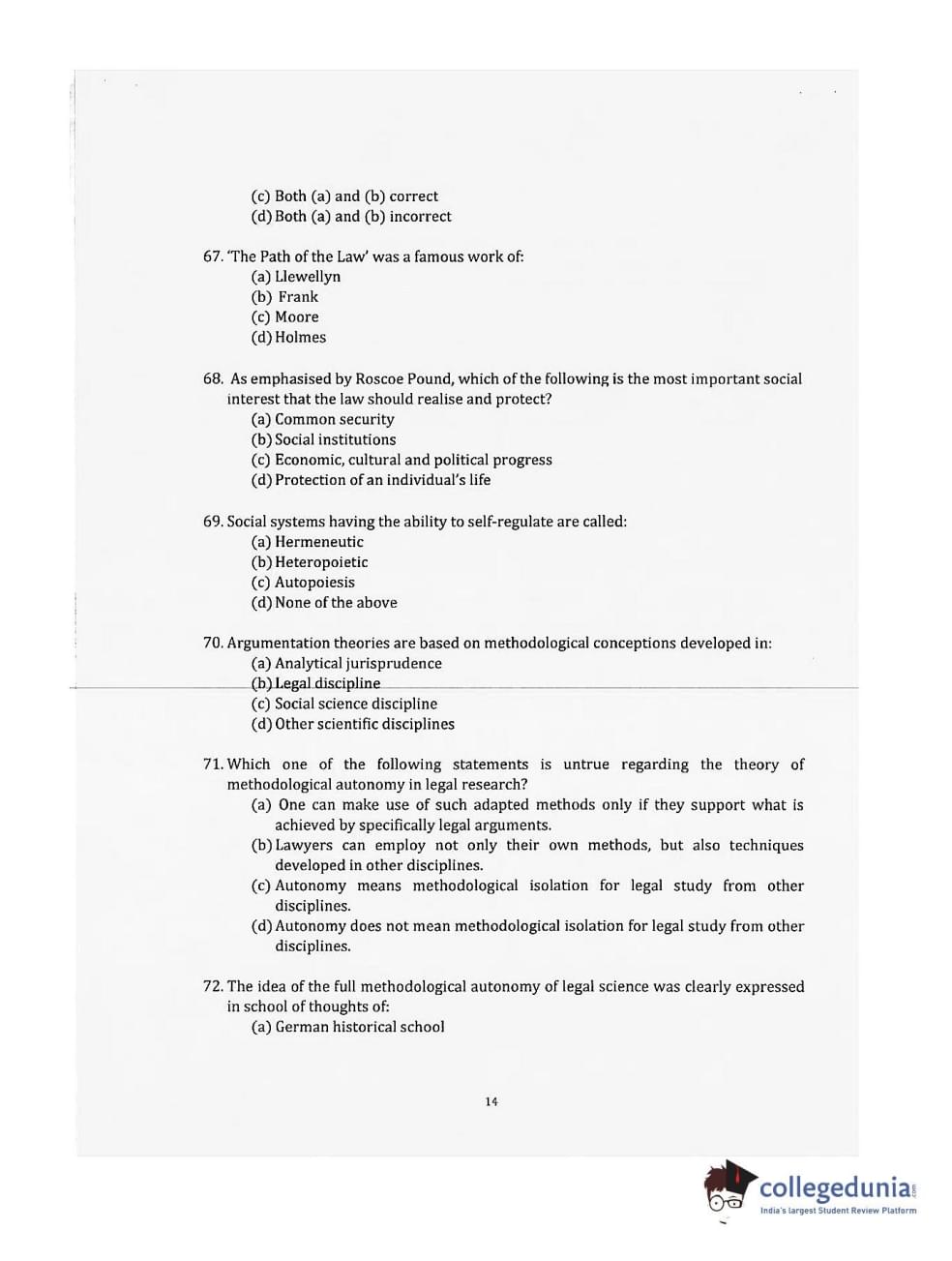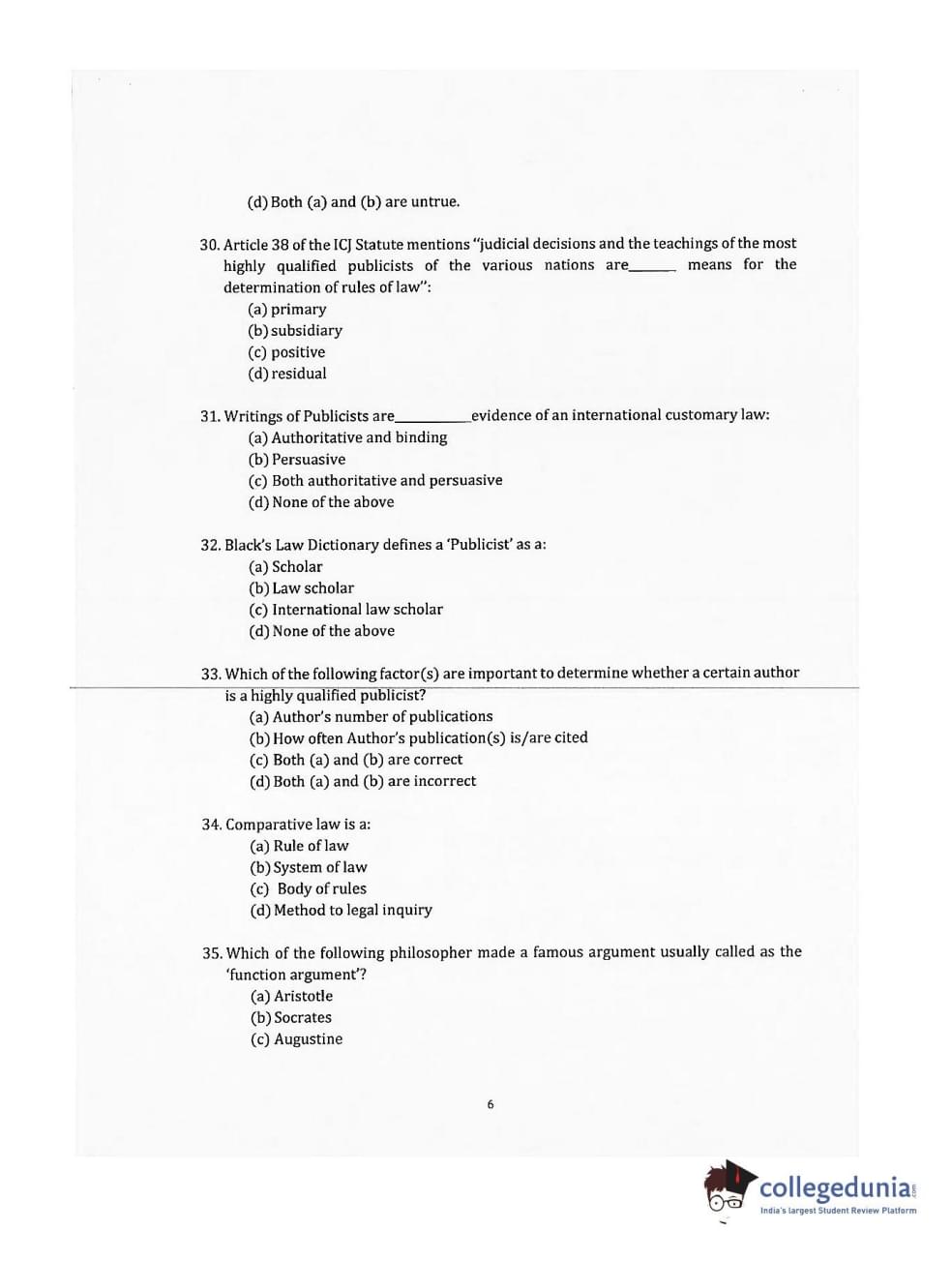 AILET 2019 PhD Question Paper with Answer Key PDFs Afternoon Session