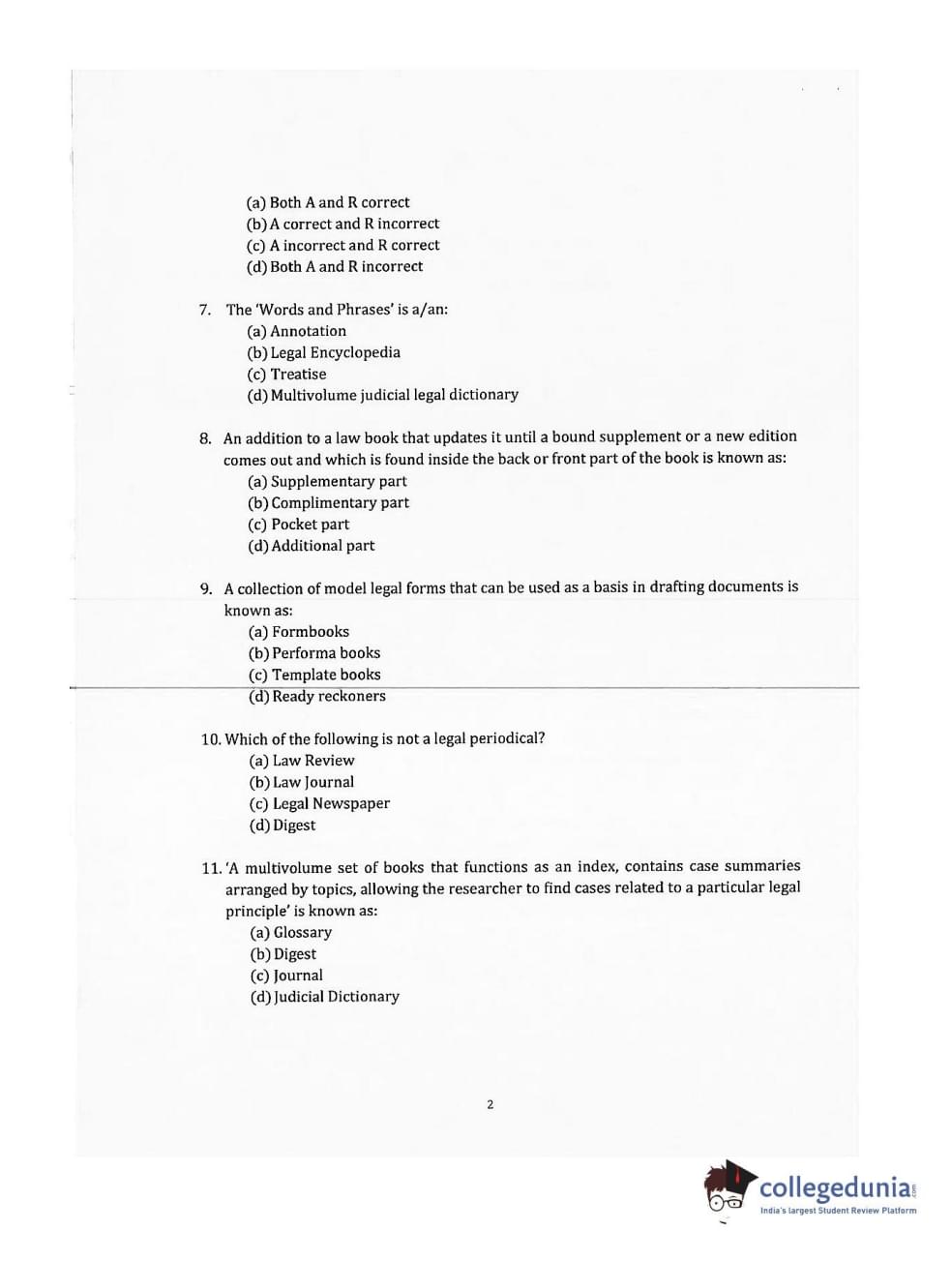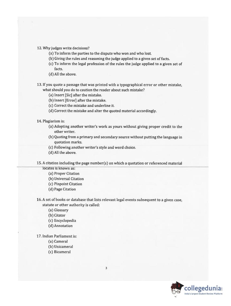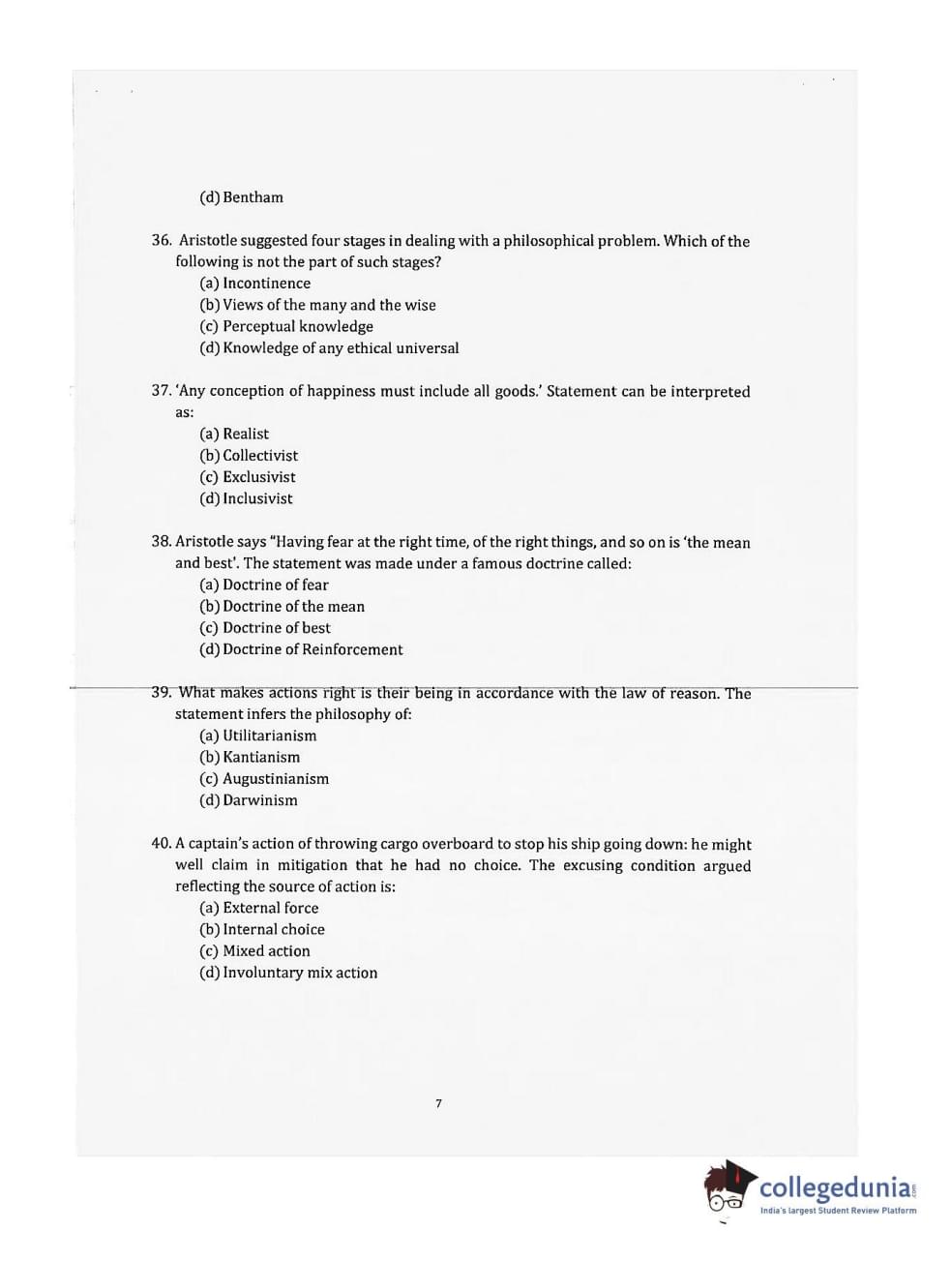 AILET 2019 PhD Question Paper with Answer Key PDFs Afternoon Session