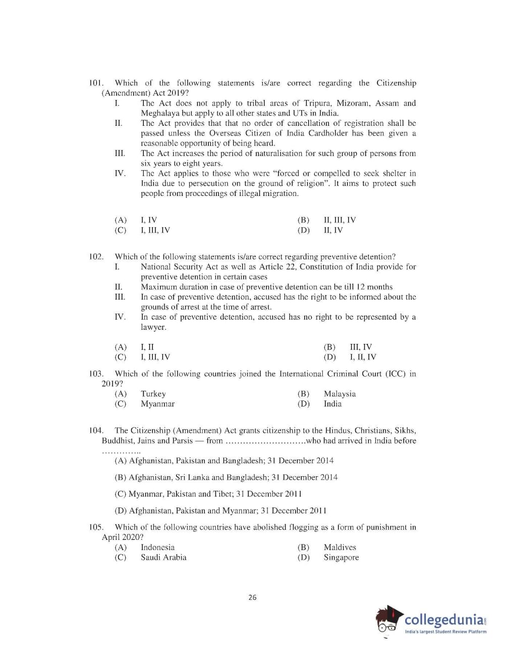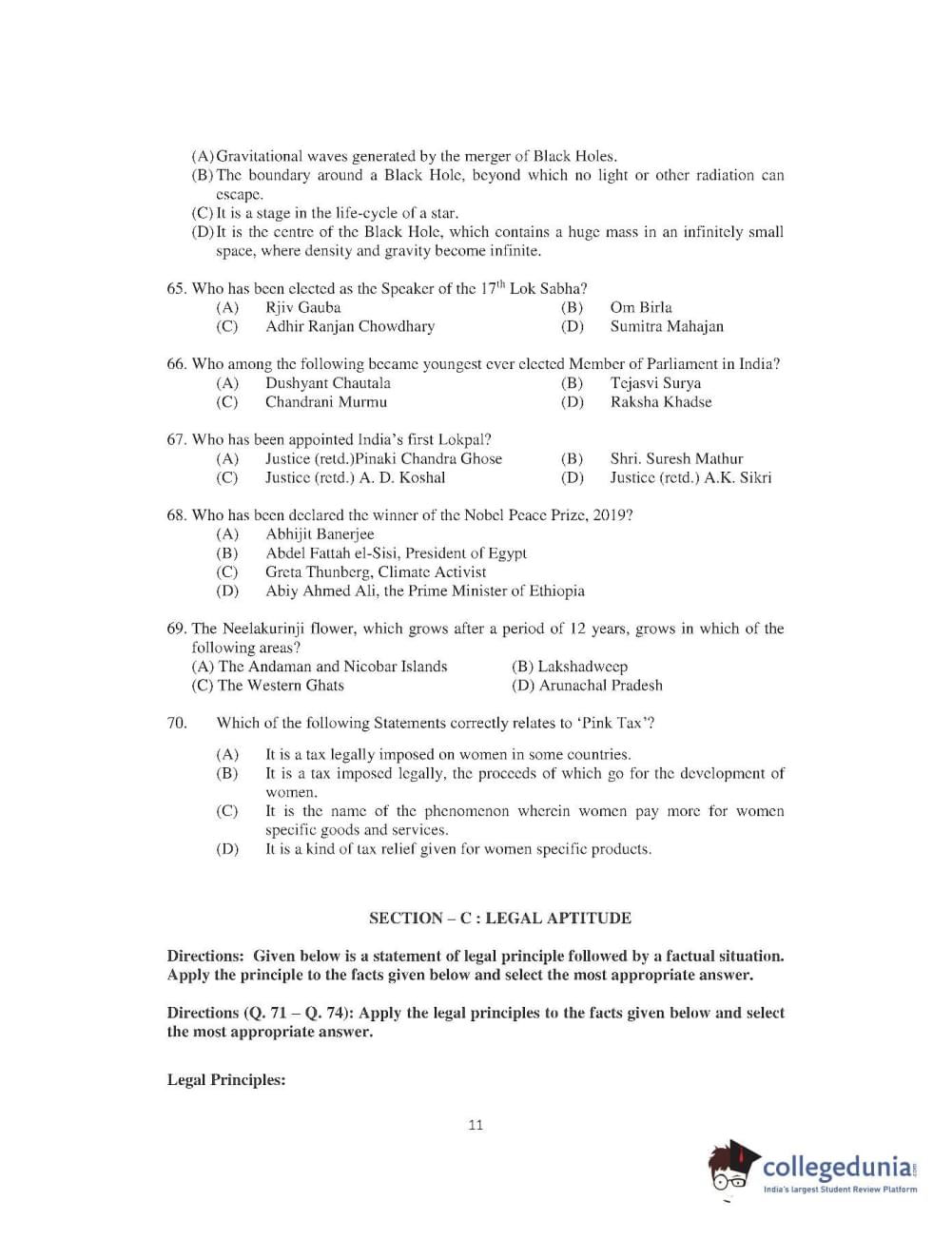 AILET 2020 BA LLB Question Paper with Answer Key PDFs