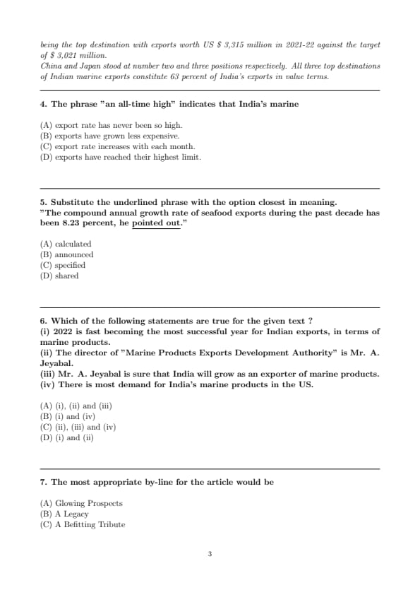 (iii) Mr. A. Jeyabal is sure that India will grow as an exporter of marine products.