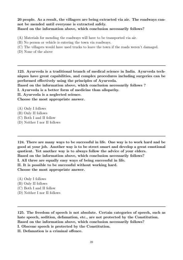 The conclusion drawn above follows logically if which of the following is assumed ?