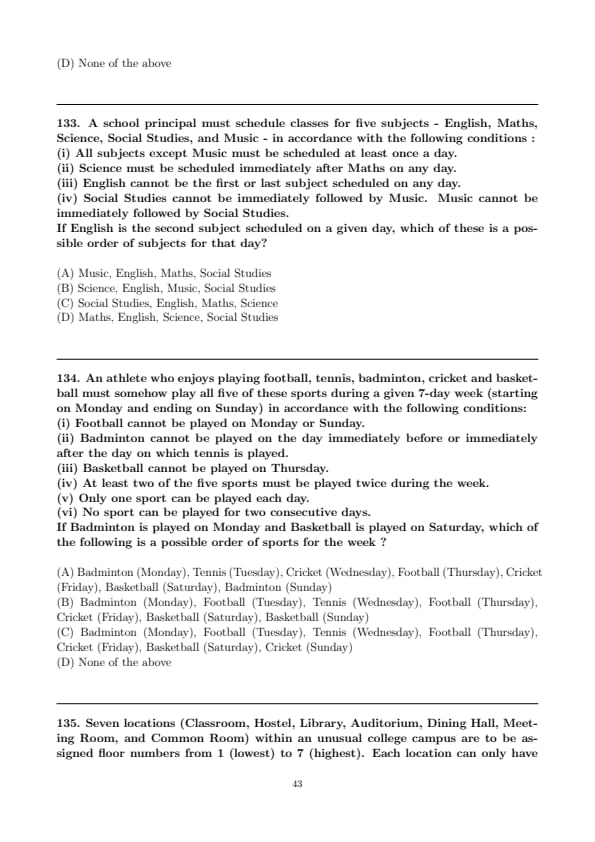 (iv) Social Studies cannot be immediately followed by Music. Music cannot be immediately followed by Social Studies.