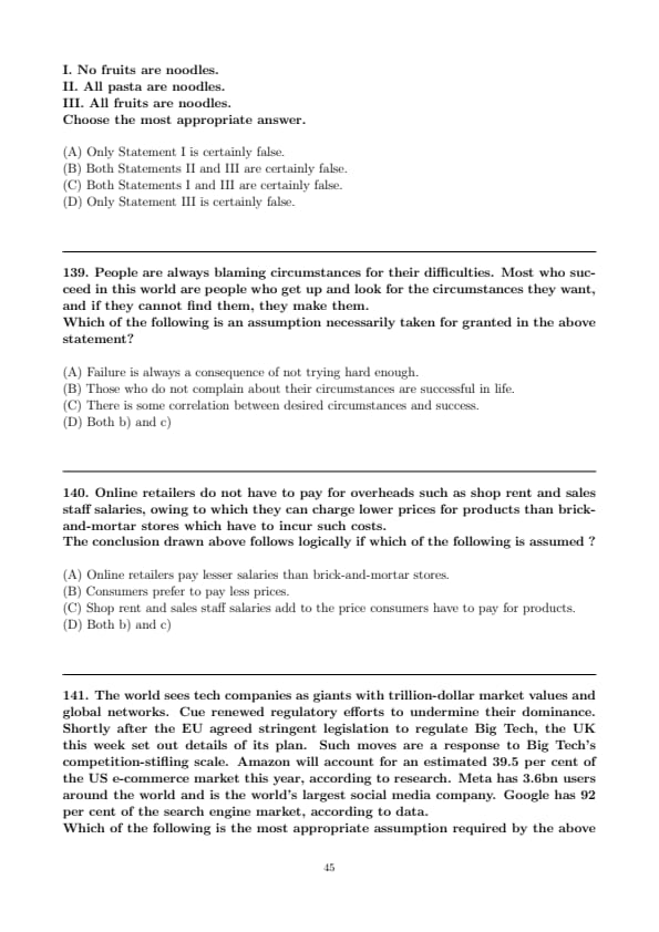 Which of the following is an assumption necessarily taken for granted in the above statement?