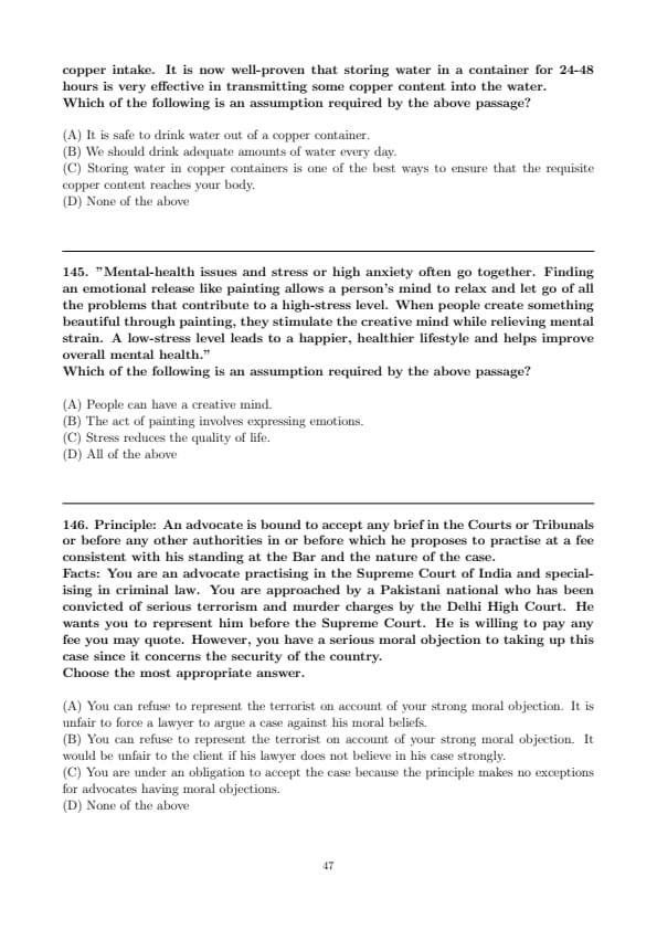 Facts: You are an advocate practising in the Supreme Court of India and specialising in criminal law. You are approached by a Pakistani national who has been convicted of serious terrorism and murder charges by the Delhi High Court. He wants you to represent him before the Supreme Court. He is willing to pay any fee you may quote. However, you have a serious moral objection to taking up this case since it concerns the security of the country.