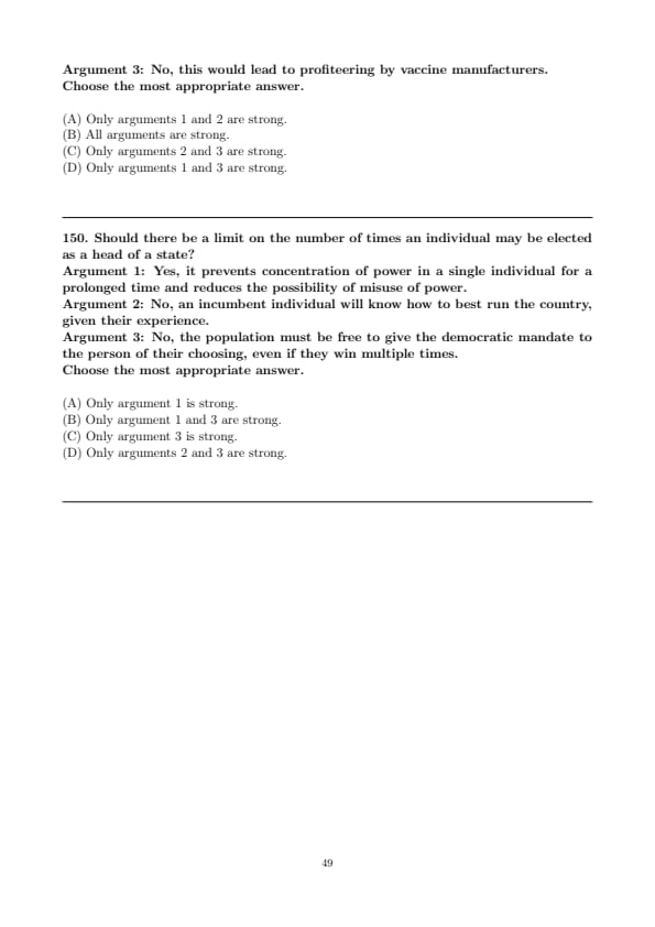 Argument 3: No, the population must be free to give the democratic mandate to the person of their choosing, even if they win multiple times.