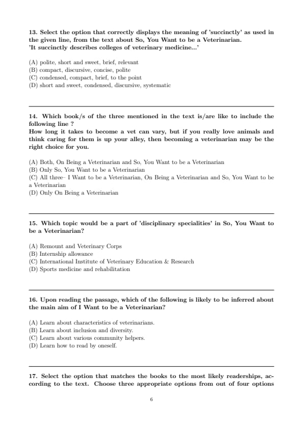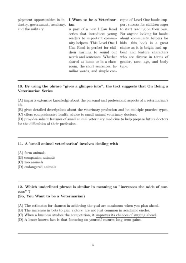 - (B) is incorrect as this is the description for So, You Want to be a Veterinarian, not the On Being a Veterinarian Series.