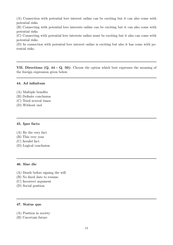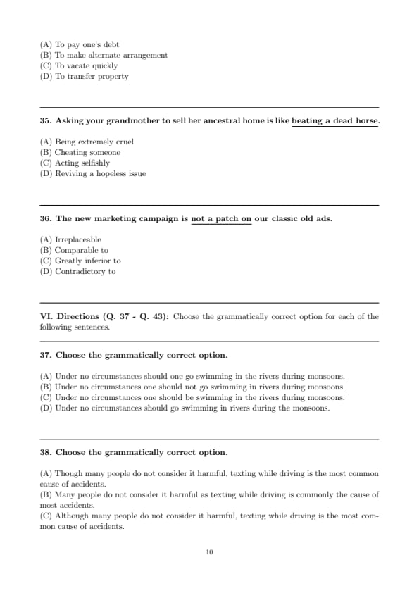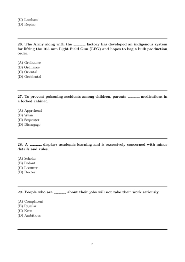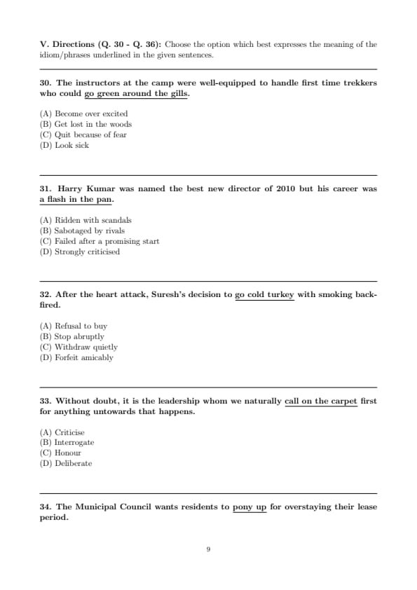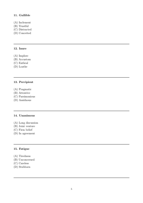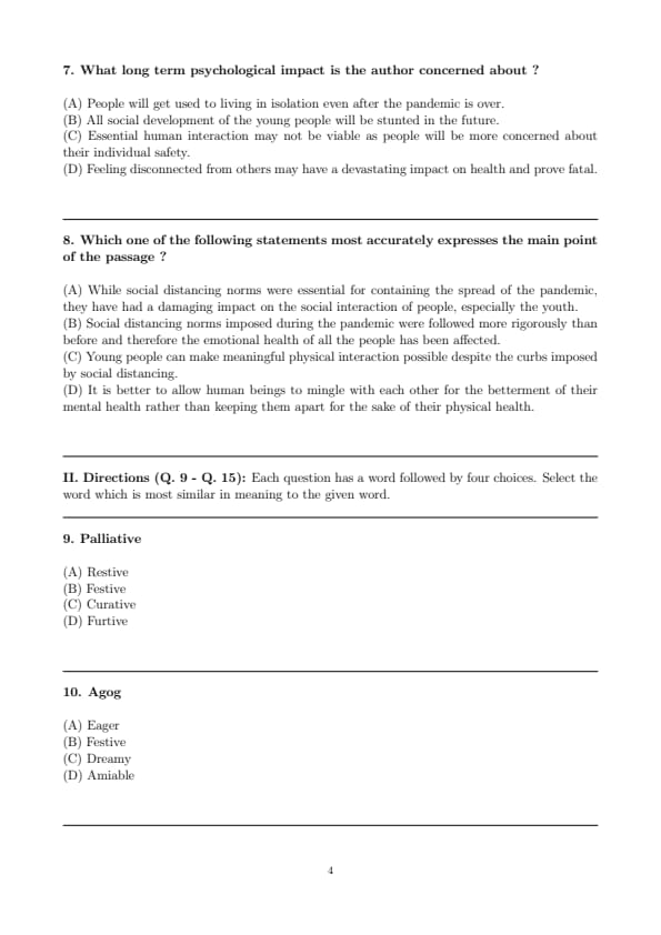 II. Directions (Q. 9 - Q. 15): Each question has a word followed by four choices. Select the word which is most similar in meaning to the given word.