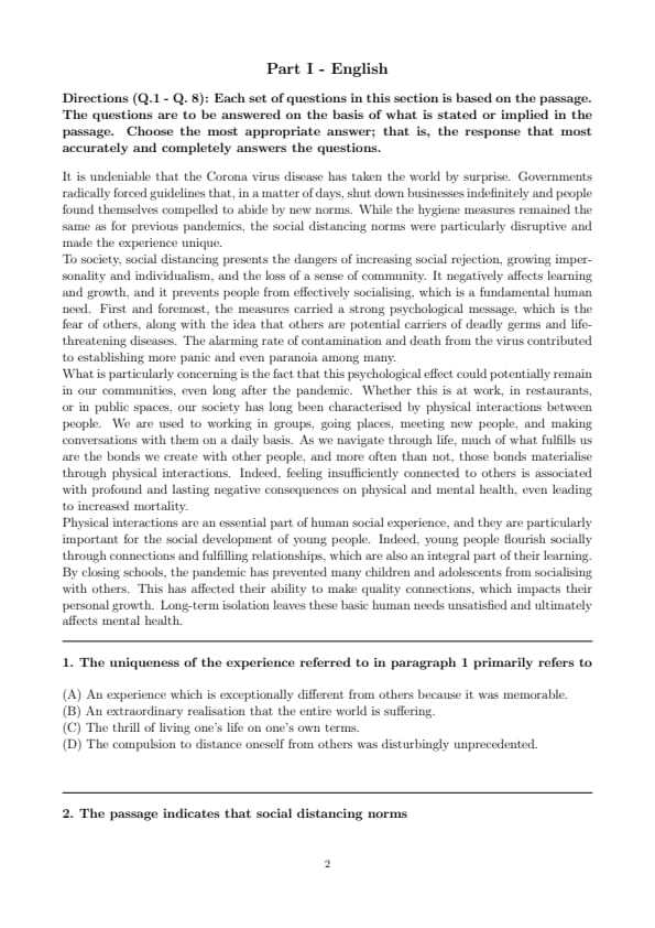 Option (D) is incorrect as the paragraphs are clearly linked by the central theme of social distancing's negative impact.