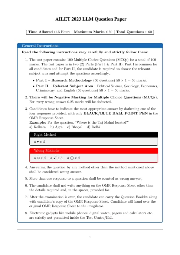| AILET 2023 LLM Question Paper with Solution PDF | Check Solution |